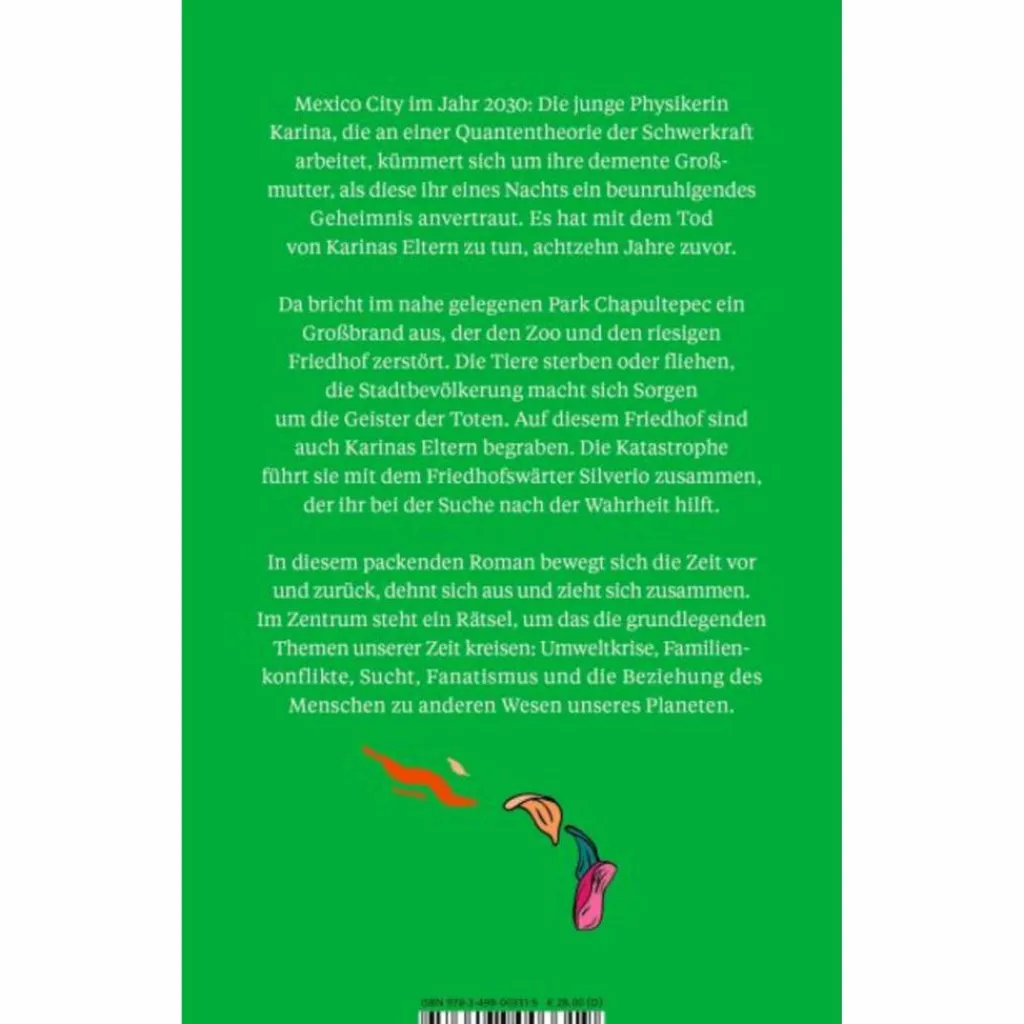 Mexiko-Stadt, Sommer 2029. Karina, Doktorandin der Quantenphysik, lebt bei ihrer alkoholkranken Großmutter, um die sie sich kümmert. Im nahe gelegenen Park Chapultepec, in dem sich ein Friedhof und ein riesiger Zoo befinden, bricht während einer Hitzewelle ein Feuer aus, die Tiere sterben oder fliehen, der Park wird völlig zerstört.