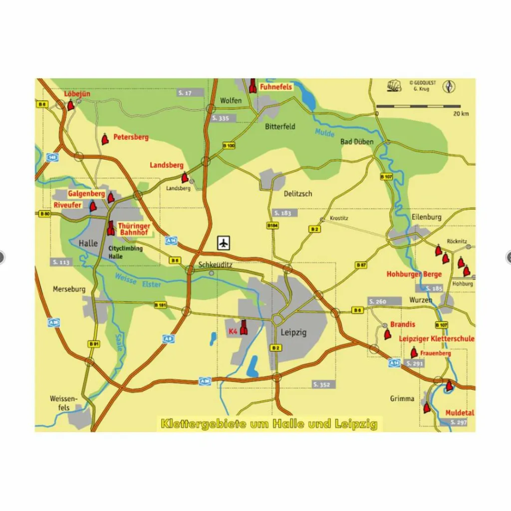 - mit vielen Klettergebieten, wie Löbejün, Hohburger Berge, Leipziger Kletterschule, Muldetal usw. sehr informativ