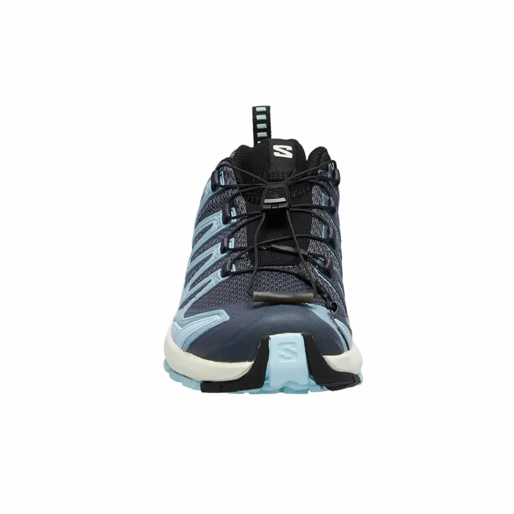 Das ist der XA Pro 3D V9 von Salomon. Aus schnell trocknendem, luftigem Mesh und stabilisierendem TPU-Verstärkungen. Innen leicht gepolstert und mit synthetischem Futter ausgestattet. Für angenehmes Auftreten und gut klimatisierte Füße. Die verdeckt eingearbeitete Zunge verhindert das Eindringen störender Kleinstteilchen.