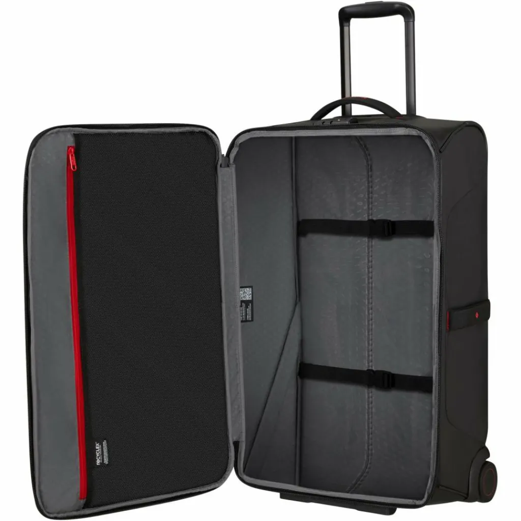 Sollte es auf dem Weg zur Unterkunft mal einen Regenschauer geben, steckt ihn die Reisetasche mit Rollen locker weg. Als sehr nützlich erweist sich auch das große RV-Fach vorne. Hier kannst du beispielsweise Reiseunterlagen oder eine Jacke aufbewahren, sprich alles, was du unterwegs schnell zur Hand haben möchtest.