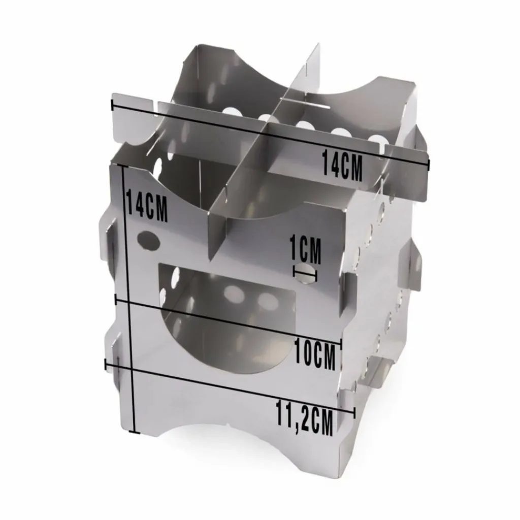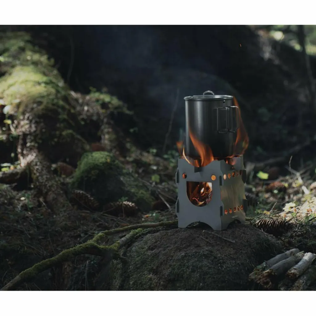 Mit dem reisefreundlichen Packmaß kannst du den Holzvergaser problemlos in der Jackentasche oder einer Ecke deines Rucksacks verstauen. Und da er so unkompliziert ist, musst du nicht einmal Brennstoff mit dir führen. Die Brennkammer ist 10 x 10 x 9,5 cm groß und besitzt an den Seiten Luftöffnungen, um den Kamineffekt zu verbessern. Einmal angefeuert, brennt er mit Zweigen bis zu Fingerdicke am besten.