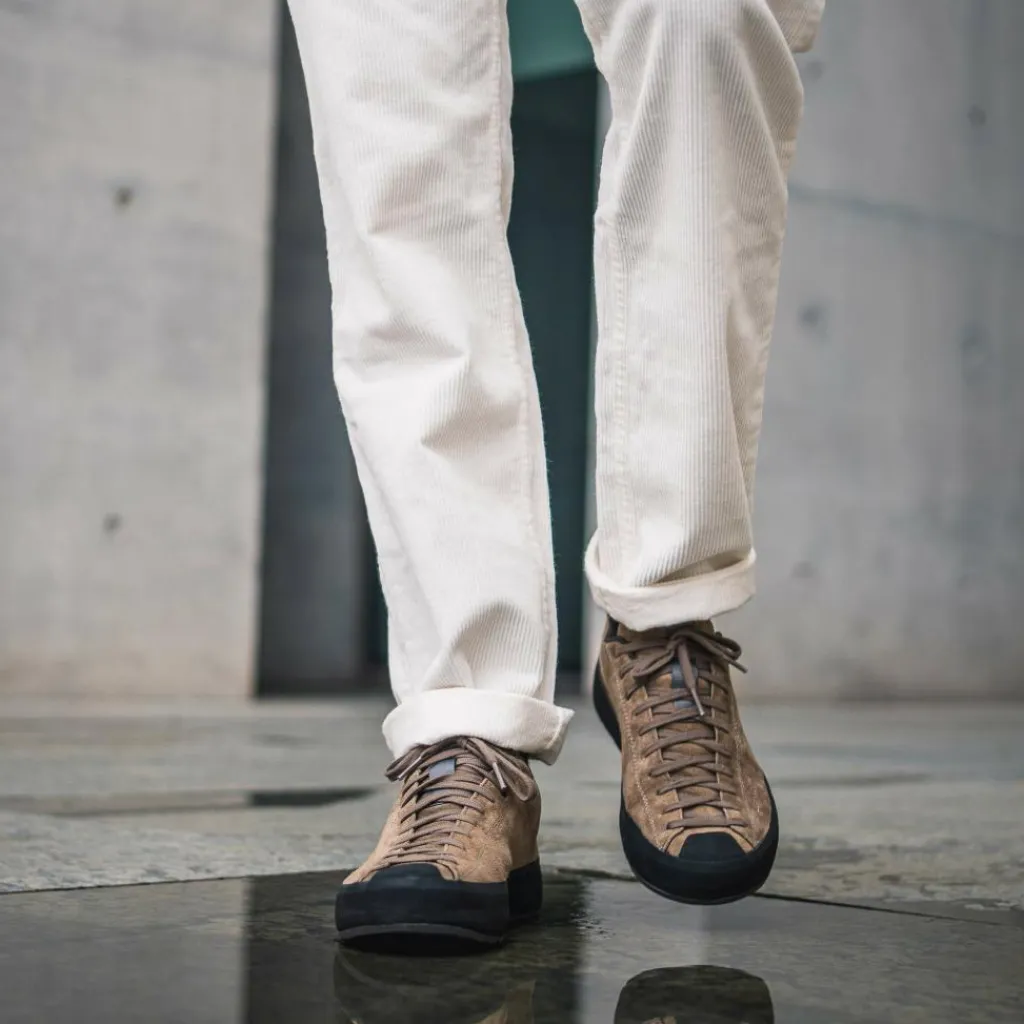 Das Obermaterial ist weich und strapazierfähig; das Futtermaterial unterstützt den Feuchtigkeitstransport und sorgt so für ein ausgeglichenes Fußklima. Die tief angesetzte Kletterschnürung zeigt, wo die Marke ihren Ursprung hat, und ermöglicht eine optimale Anpassung an den Fuß.