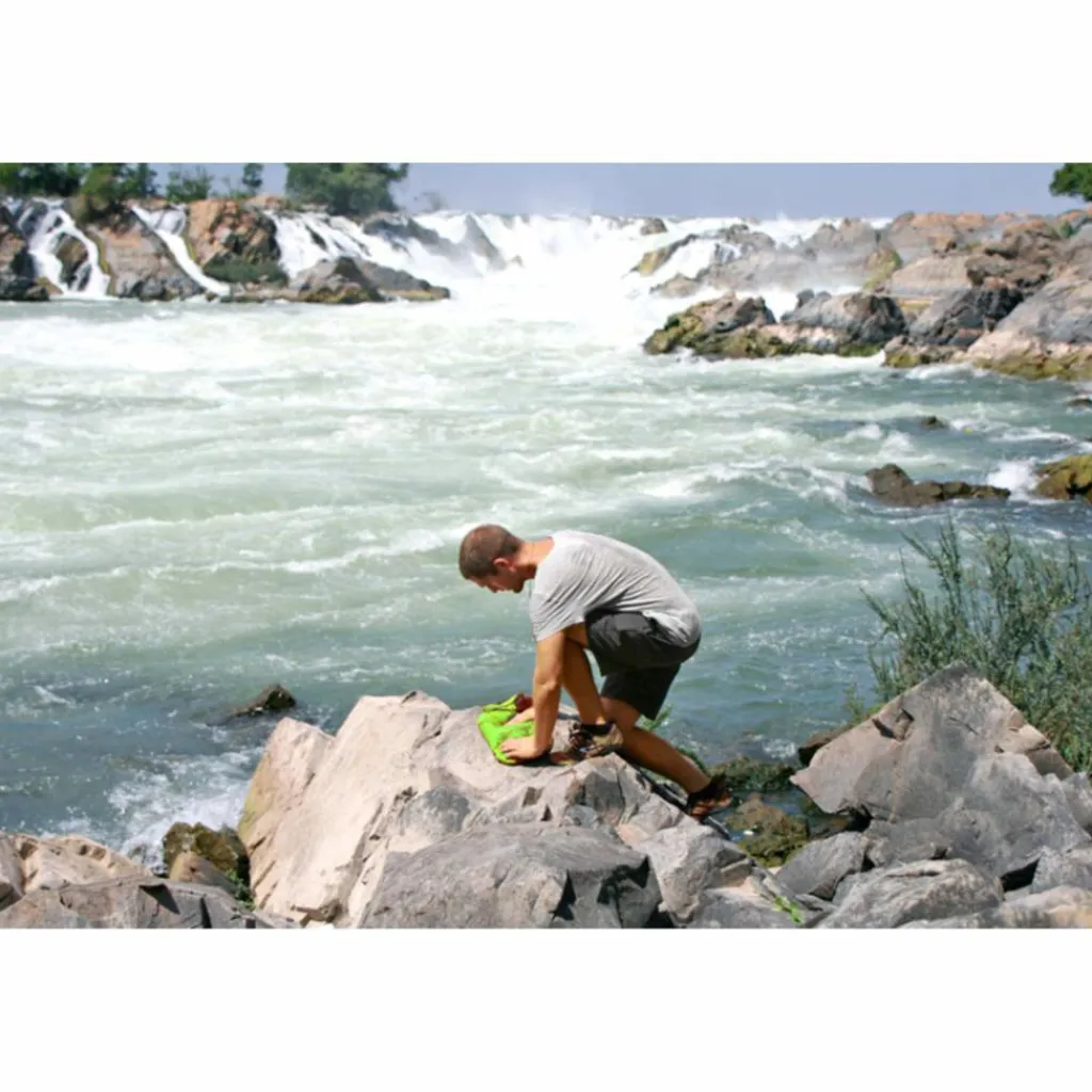 Dabei arbeitet der Beutel mit seinen flexiblen Noppen wie ein bewegliches Waschbrett. Der dichte Beutel mit der aufgedruckten Anleitung sorgt dafür, dass das Wasser wirklich in der Wäsche bleibt und nicht wie bei der Handwäsche im Raum herumspritzt. Und wer auch Zuhause gerne vor der Waschmaschine sitzt und der Wäsche beim Sauberwerden zusieht, kann das auch hier dank des eingebauten Folienfensters.