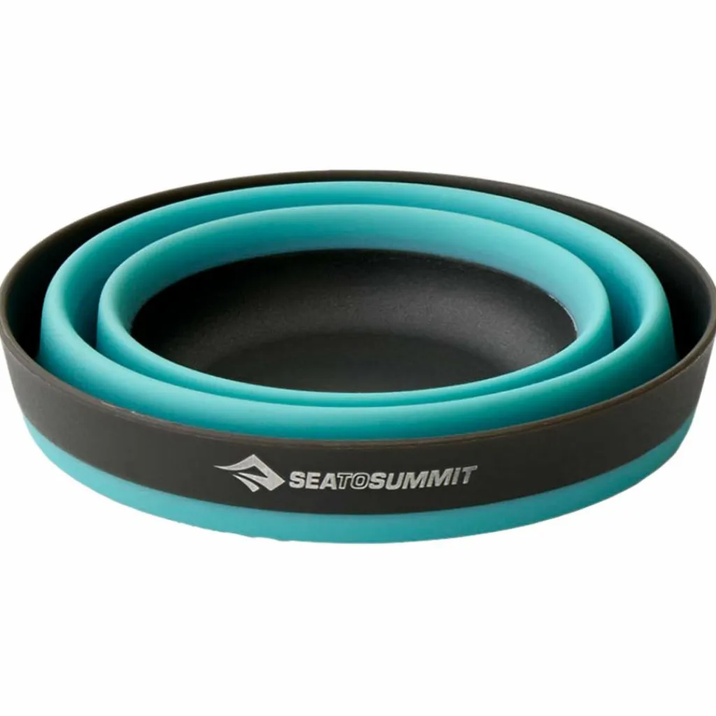 Die Frontier-Kollektion ist die transportfreundliche Lösung von Sea to Summit. Die Küchenprodukte lassen sich zu einer flachen Scheibe zusammenfalten und können dadurch platzsparend im Gepäck verstaut werden – ideal also für Familien, die viel Geschirr transportieren müssen. Das Faltgeschirr ist aus glasfaserverstärktem Nylon 66 gefertigt und verfügt über flexible Seitenwände aus Silikon. Alle Teile sind lebensmittelecht und hitzebeständig.