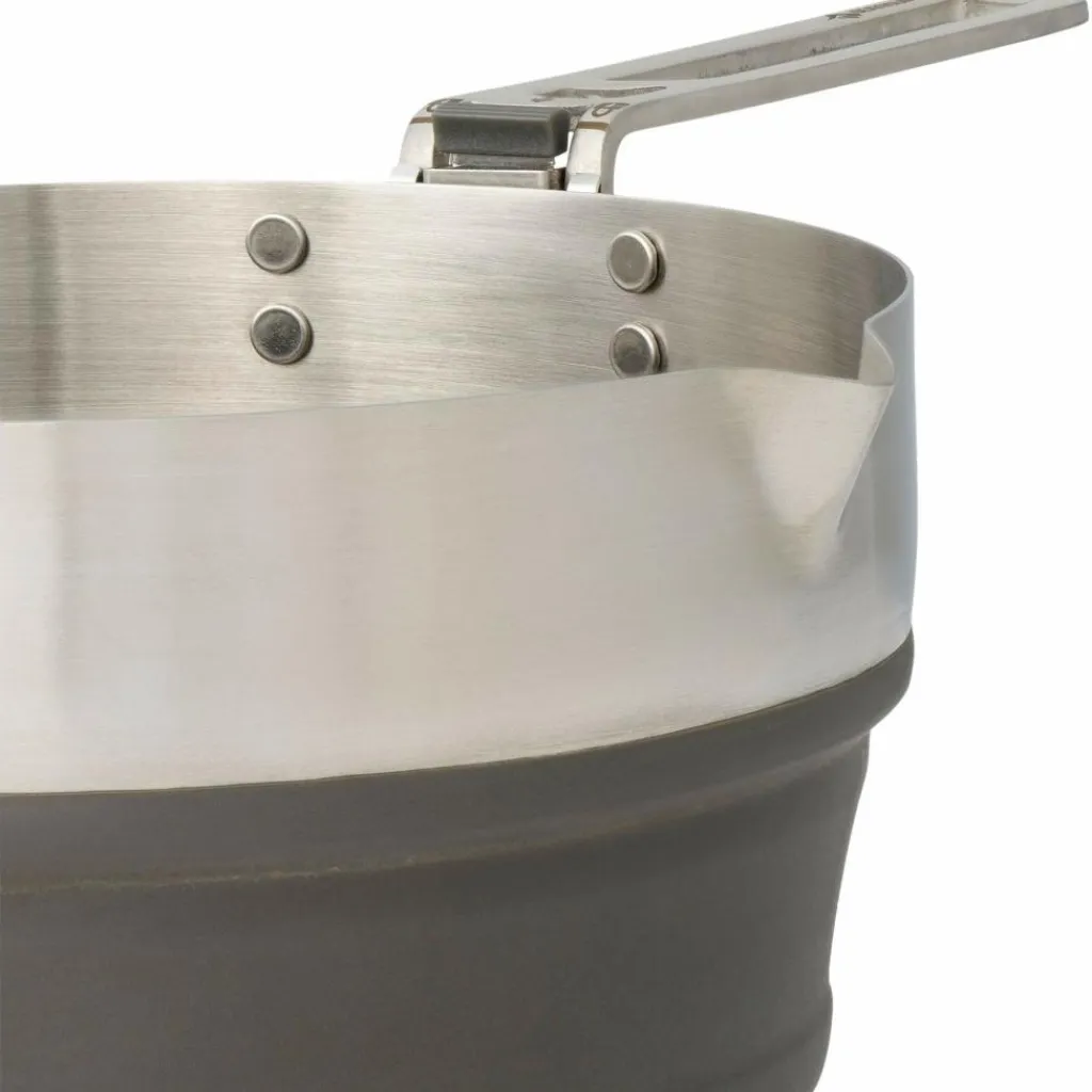 Der Collapsible Pouring Pot ist sowohl für Induktionsfelder als auch für Gaskocher geeignet. Beim Kochen mit Gas solltest du jedoch darauf achten, dass die Flammen nicht über den Topfboden hinausschlagen.