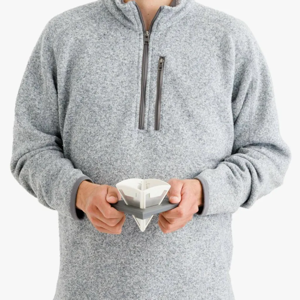 Konventionelle Papierfiltertüten besitzen den Nachteil, dass sie Müll produzieren und den Geschmack des Kaffees verändern. Mit dem Collapsible Pour Over erhältst du nicht nur einen wiederverwendbaren Filter mit kleinem Packmaß, sondern auch einen Filter, der den Eigengeschmack des Kaffees nicht verfälscht. Der Filter passt auf gängige Bechergrößen und kann nach der Verwendung einfach mit Wasser ausgespült werden. Durch den Faltmechanismus nimmt er kaum Platz im Gepäck ein.