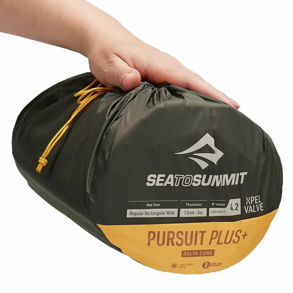 Die Pursuit Plus SI ist mit weichem Schaumstoff gefüllt, wodurch sie in der Nacht kaum Geräusche erzeugt – ideal für geräuschempfindliche Personen. Der Schaumstoff wurde horizontal gestanzt. Durch diese Technik wird der Schaumstoffkern um 40 % reduziert, ohne offene Stanzungen an der Ober- oder Unterseite zu hinterlassen, die Kältebrücken verursachen könnten. Dadurch verringert sich das Gewicht und Packmaß, ohne den R-Wert drastisch zu senken.