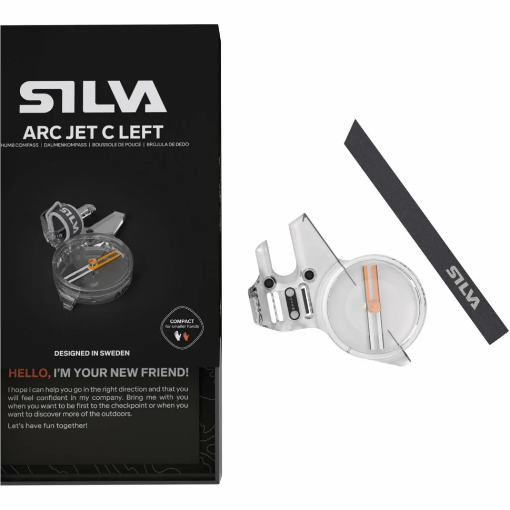Der Arc Jet C ist die handlichere Variante des originalen Arc Jet-Kompasses und eignet sich besonders gut für kleinere Hände. Er ist für die linke Hand entworfen und verfügt über die gleiche hochwertige Silva Jet 2.0-Hochleistungsnadel sowie über die identische Kompassdosengröße und -qualität wie das Standardmodell – hat aber eine kleinere Daumenauflage.