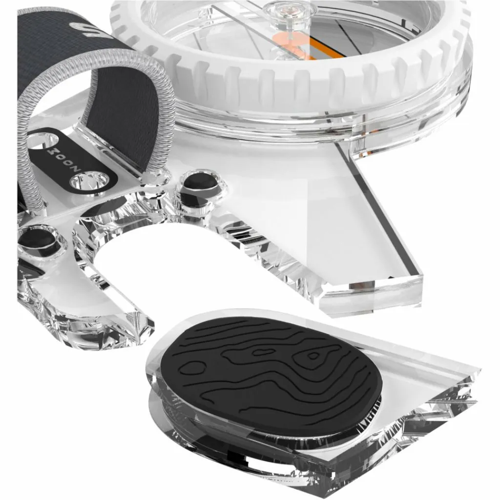 Dank seiner ergonomisch geformten Grundplatte liegt der Kompass sicher und bequem in der Hand. Der direkte Kontakt zwischen Daumen und Karte ermöglicht eine besonders gute Kartenführung. Zwei unterschiedlich feste, innen gummierte Daumenbänder sorgen für festen Sitz – beide sind im Lieferumfang enthalten. Für alle, die den klassischen Daumengriff bevorzugen, lässt sich eine einfach zu befestigende Daumenplatte aufstecken.