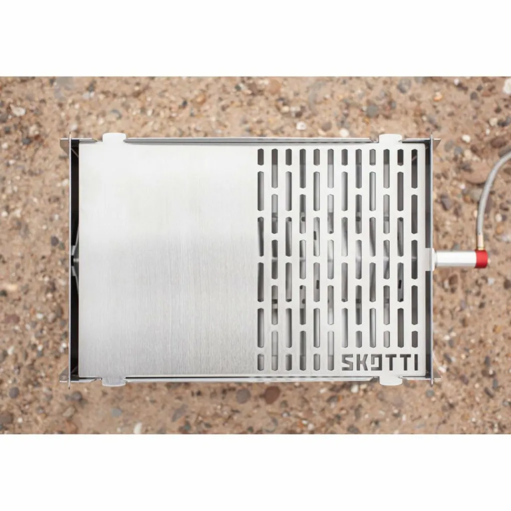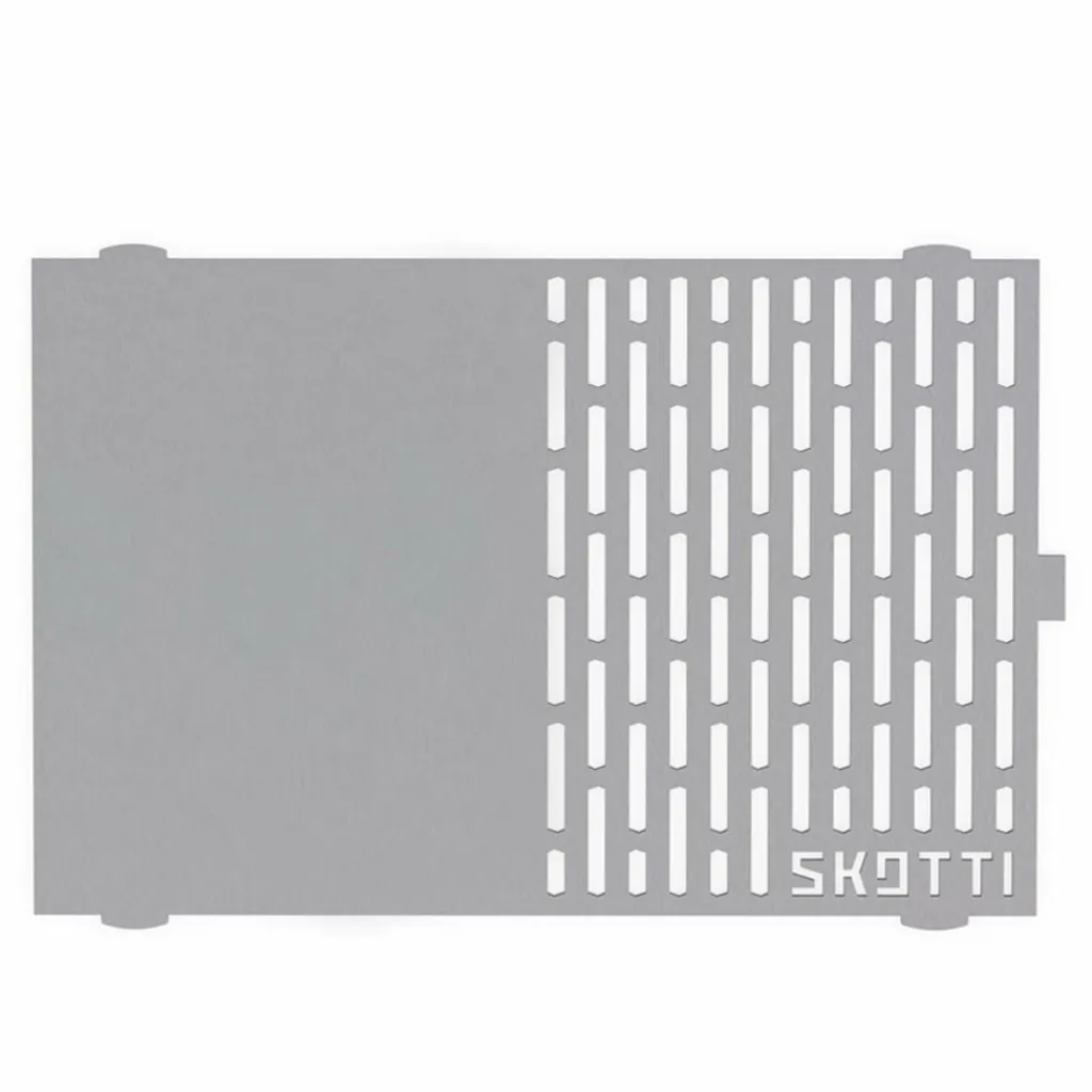 Legst du die Plancha (spanisch für Eisen) statt des Grillrosts in deinen Skotti Grill, kannst du dank der indirekten Hitze auch Gemüse oder Garnelen braten, während nebenan das Fleisch brutzelt.