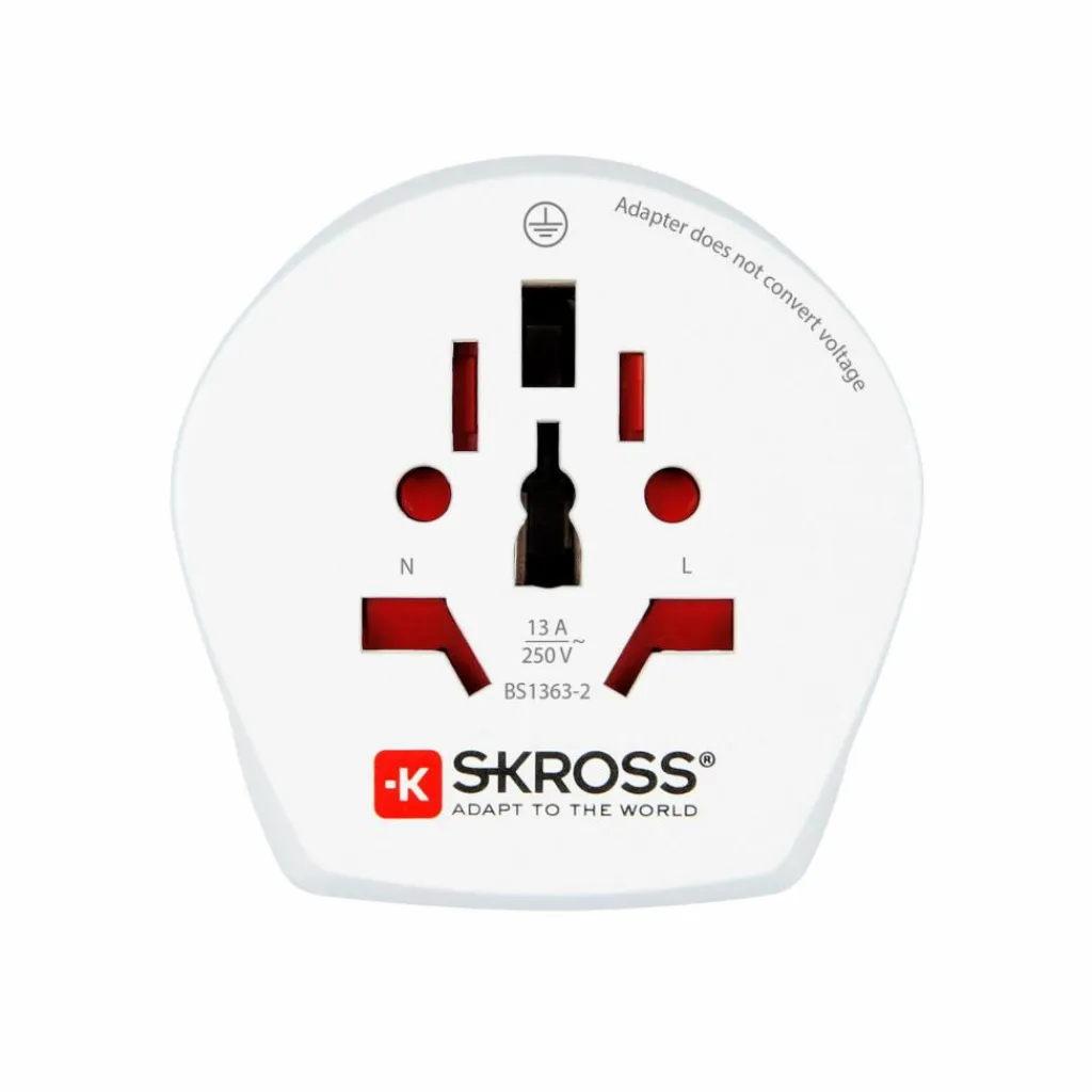 Dieser Reisestecker bietet einen Ausgang für Stecker aus Europa (Schuko) und Indien und eignet sich auch zum Betreiben von Notebooks und Föns.