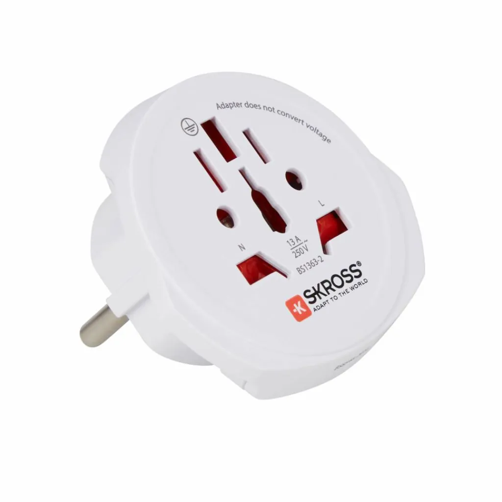 Der Combo World to EU/AUS besteht aus zwei Adaptern, die den australischen und Schuko-Standard besitzen. Dadurch ist er in 119 Destinationen einsetzbar – auch für leistungsstarke Geräte!