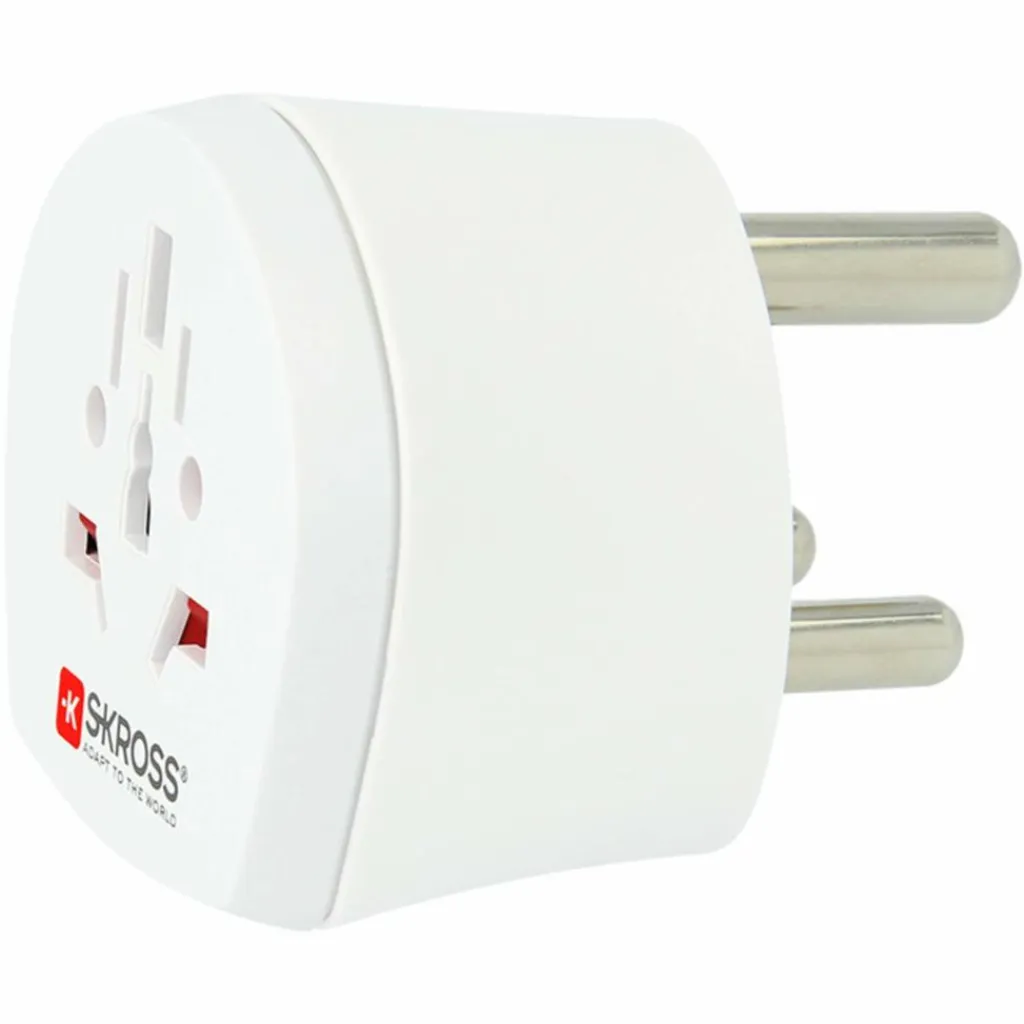 Reisestecker für Reisen nach Südafrika und alle Länder mit südafrikanischem Standard. Der Einsatz erlaubt das Anschließen unterschiedlicher Steckertypen weltweit.
