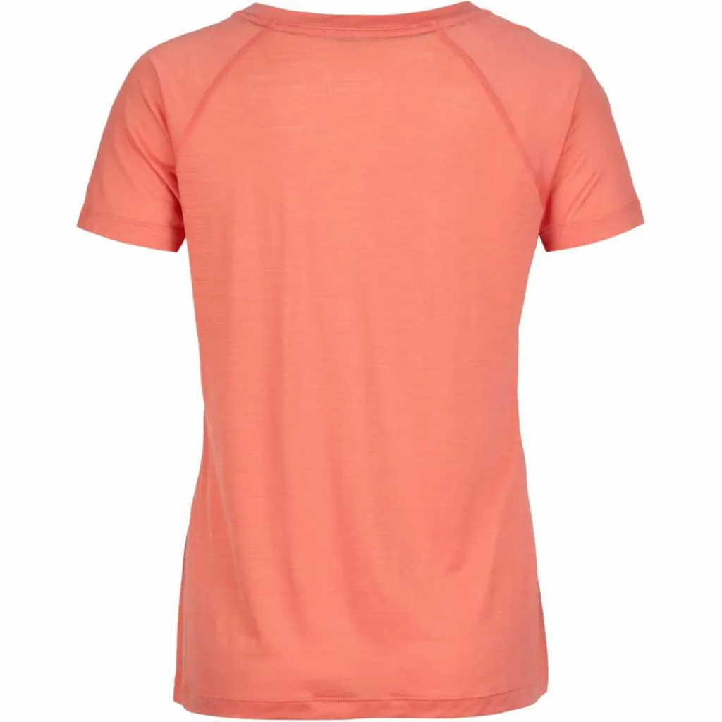 Das Shirt ist angenehm leicht und eignet sich dadurch auch sehr gut für Ultralight-Hiker und alle, die gerne möglichst unbeschwert unterwegs sein wollen. Die reguläre Passform sorgt für Bewegungsfreiheit, wirkt aber dennoch feminin. Durch die Flatlock-Nähte wird vermieden, dass unangenehme Reibung an den Nahtstellen entsteht. Durch den Raglan-Schnitt der Ärmel und die versetzten Seitennähte trägt sich das Shirt auch in Kombination mit einem Rucksack sehr angenehm.