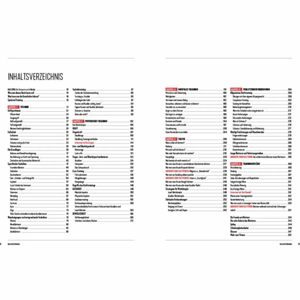 Gegliedert ist das Buch in ein Kapitel zu Klettertechniken, einem zum kletterspezifischen Kraft-, Ausdauer- und Beweglichkeitstraining, und einem ausführlichen Kapitel zum mentalen Training. Taktik und Trainingsplanung kommen auch nicht zu kurz. Dazwischen finden sich inspirierende Geschichten aus der Kletter-Community. Das Autoren-Duo Martin Mobråten und Stian Christophersen, die beide als Athleten der norwegischen Nationalmannschaft am Start waren und heute als Trainer arbeiten, geben mit diesem Buch ihren geballten Erfahrungsschatz weiter. Ein schönes Geschenk für sich oder kletterbegeisterte Freunde!