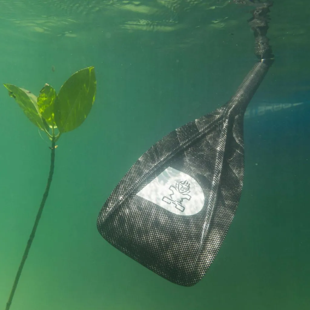 Das Paddelblatt ist aus leichtem Carbonlaminat gefertigt. Die große Blattfläche und die konkave Wölbung ermöglichen mit jedem Paddelschlag einen kräftigen Vortrieb. Das längliche Blatt lässt sich dicht am SUP-Board entlangführen und richtet sich nach dem Eintauchen im Wasser automatisch optimal aus. Schaft und ergonomischer Griff, ebenfalls aus Carbon, besitzen eine leicht mattierte Oberfläche, damit dir das Paddel nicht so leicht aus der Hand rutscht.