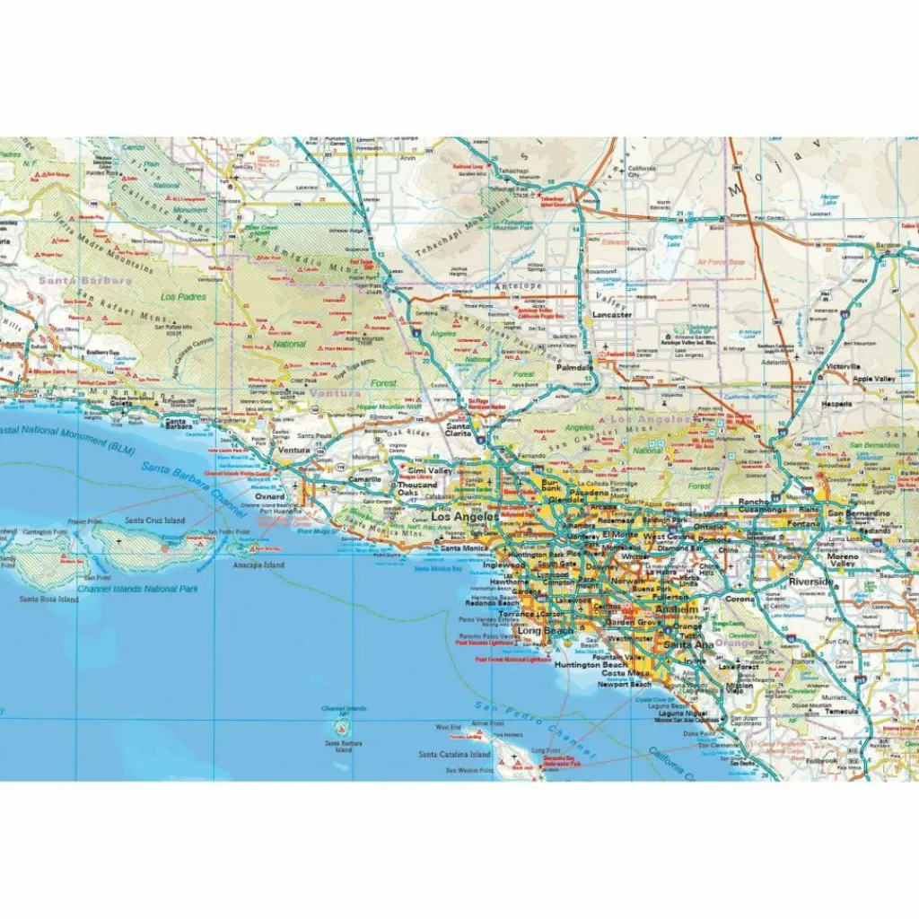 Ausstattung: – Höhenlinien mit Höhenangaben; – Farbige Höhenschichten; – Klassifiziertes Straßennetz mit Entfernungsangaben; – Sehenswürdigkeiten; – Ausführlicher Ortsindex; – GPS-genau; – Längen- und Breitengrade; – Fünfsprachige Legende (deutsch, englisch, französisch, spanisch, russisch); – Extra-Plan Los Angeles und Umgebung; – Diese Karte umfasst auch Teile von Nevada mit Las Vegas und Reno.. Handliches Format: 70×100 cm, 2-seitig bedruckt.