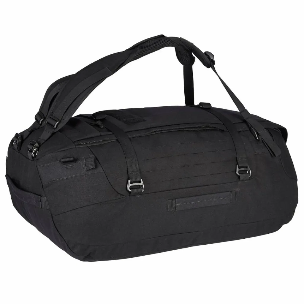 Das Hauptfach besitzt eine U-förmige Öffnung, sodass sich der Deckel komplett zur Seite klappen lässt und die Tasche leicht zu befüllen ist. Die Bungee-Kordeln im Innern halten alles an Ort und Stelle, auch wenn die Duffle nicht voll befüllt ist. In den Netzfächern im Deckel und an den Seiten ist Platz für Kleinteile wie Elektronik. Du brauchst mehr Stauraum? Die Klettfläche und Lasercut MOLLE-Laschen außen bieten Platz für modulare Erweiterungen (siehe Zubehör).