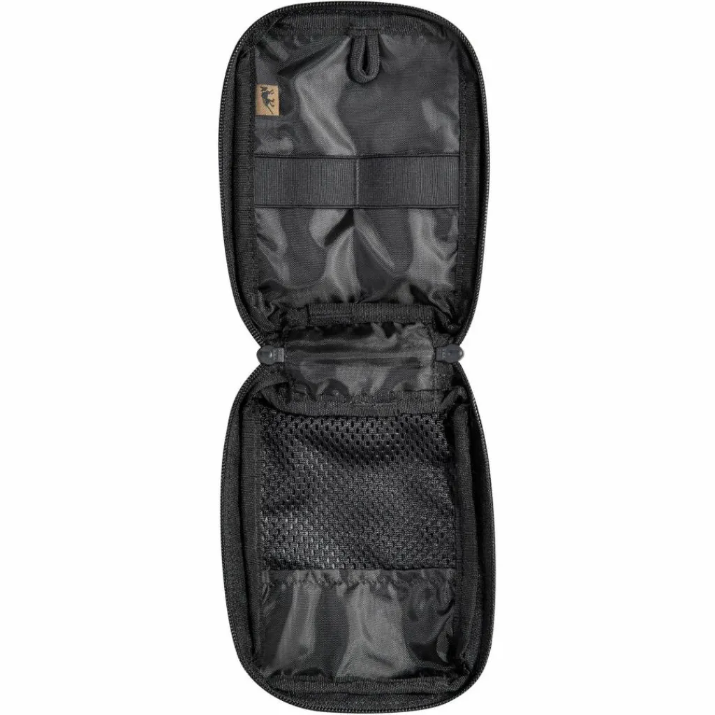 Zubehörtasche mit den Außenmaßen 15 x 10 x 4 cm, einer großen öffnung und MOLLE-Reverse-System. Innen befinden sich eine Netztasche sowie elastische Schlaufen.