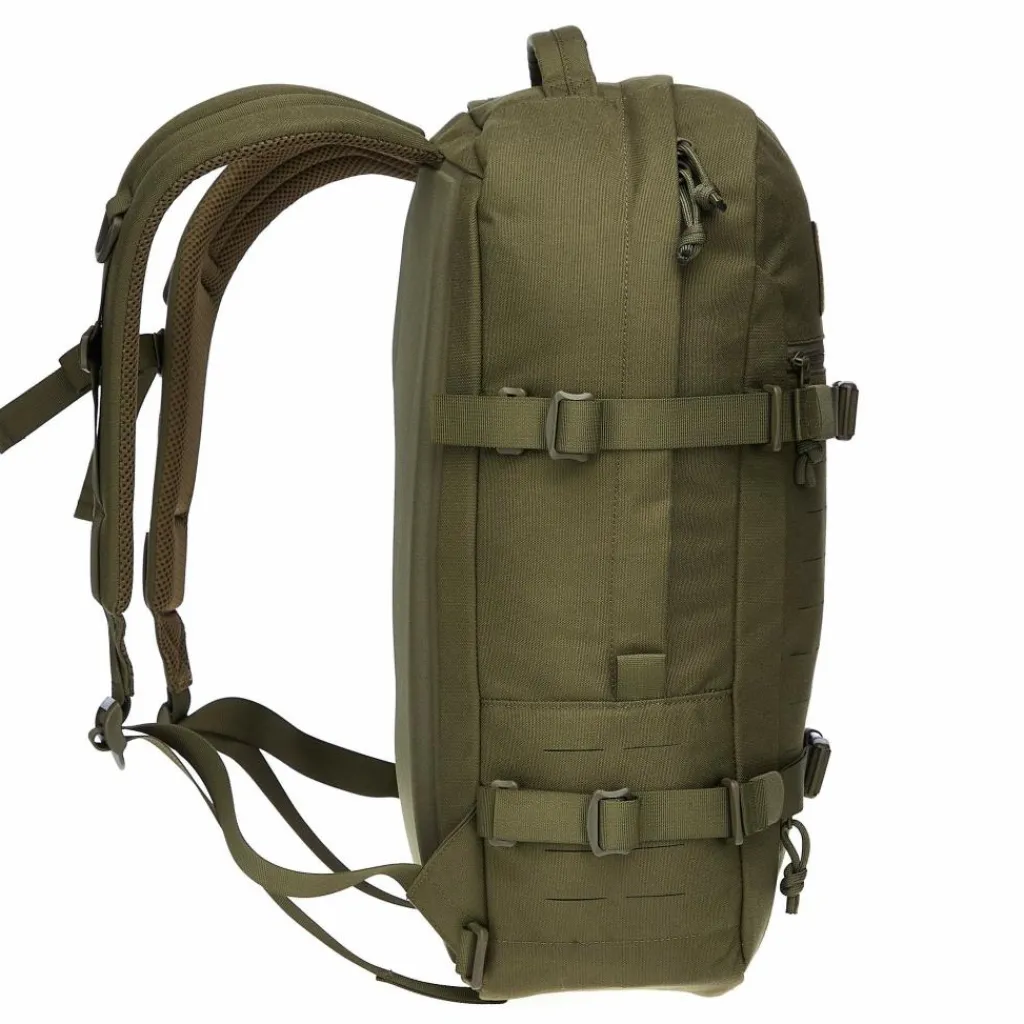 Die lasergeschnitten MOLLE-Laschen auf der Außenseite fügen sich unauffällig in den Stoff des Rucksacks ein. Mittels diverser, separat erhältlicher MOLLE-Taschen kannst du den Rucksack im Volumen erweitern und nach deinen Vorlieben gestalten. Die MOLLE-Klettlaschen im Hauptfach ermöglichen dir zudem das Anbringen verschiedener Innentaschen.
