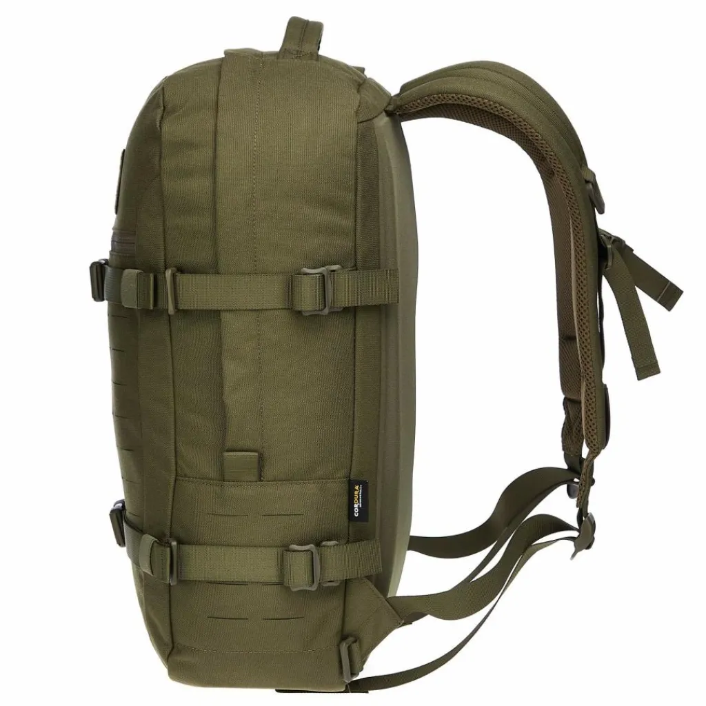 Äußerst robustes Cordura, taktisches Design und kompromisslose Funktionalität – typisch Tasmanian Tiger eben. Trotz militärischer Optik eignet sich der Tagesrucksack auch sehr gut für den zivilen Einsatz, denn sein Hauptfach ist groß genug für einen 15“ Laptop und in den flachen Frontfächern sind Handy oder Multitool immer schnell zur Hand.