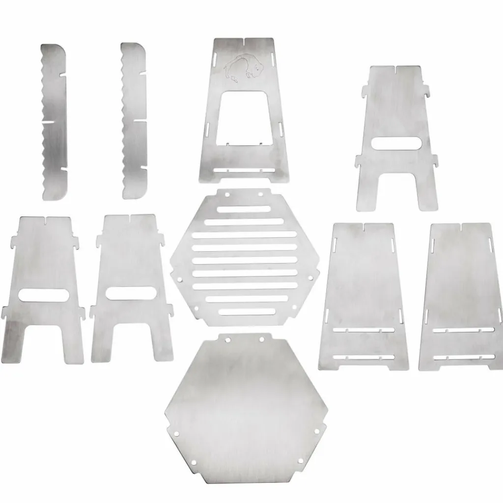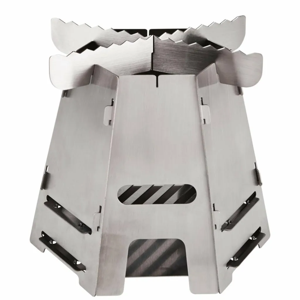 Zusammensteckbarer Hobokocher, den du mit Holz oder einem (separat erhältlichen) Spiritusbrenner betreiben kannst. Ausgelegt zur Zubereitung von Mahlzeiten für 1-2 Personen.