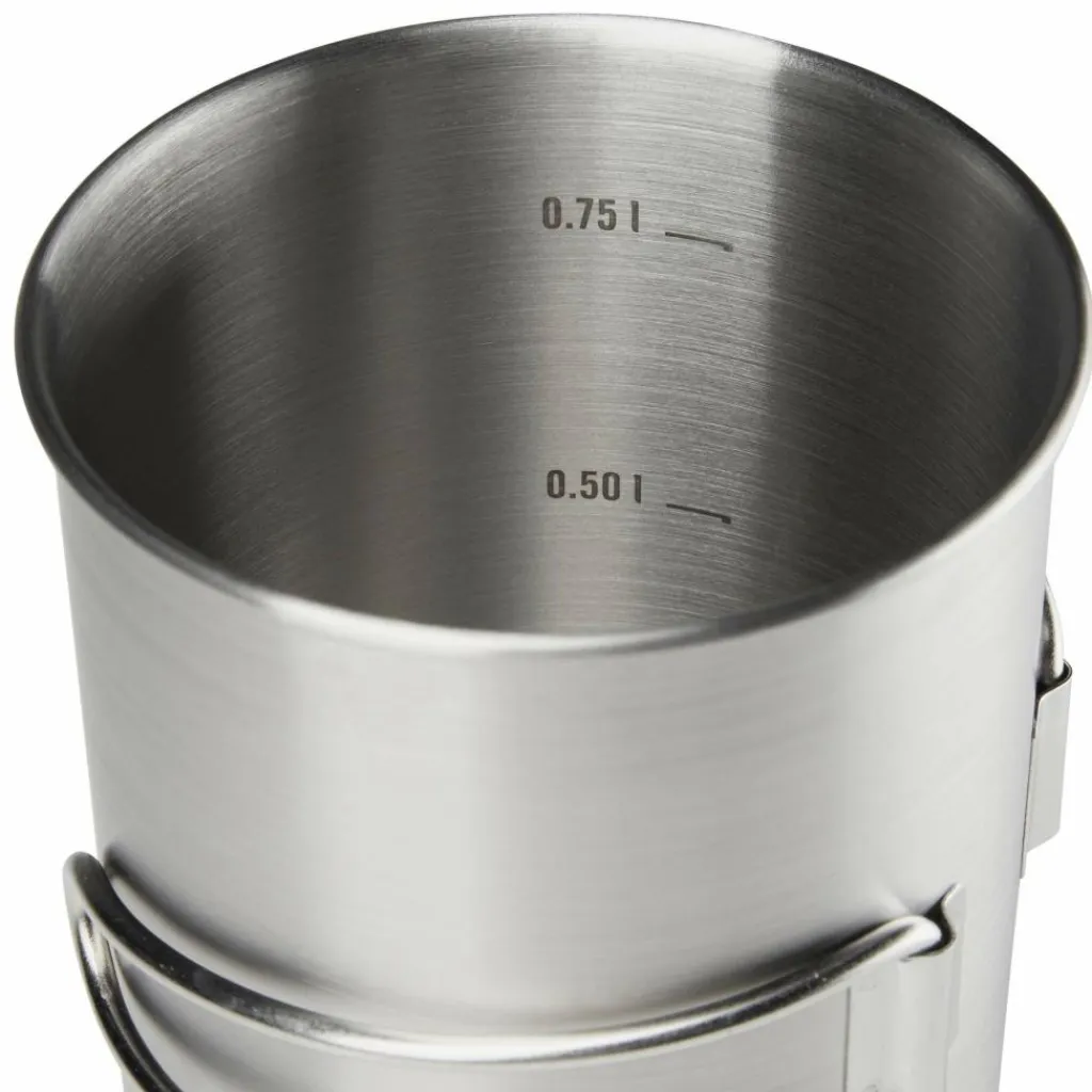 Großer Becher mit 850 ml Volumen, den du dank der robusten Ausführung auch als Topf verwenden kannst. Die klappbaren Handgriffe reduzieren das Packmaß auf ein Minimum.