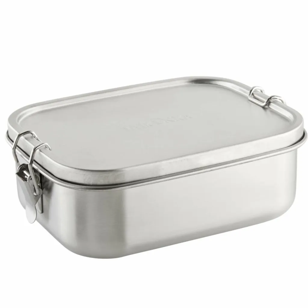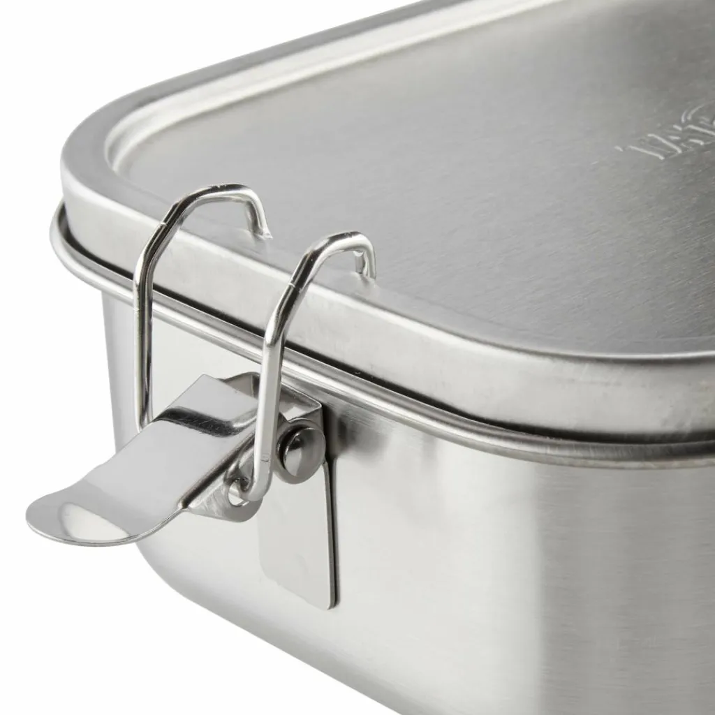 Brot, Salat, Obst oder Gemüse. Die robuste Lunch Box bietet mit 800 ml Volumen ausreichend Platz für den Mittagssnack. Sie besteht komplett aus 18/8 Edelstahl und besitzt seitliche Bügelverschlüsse.