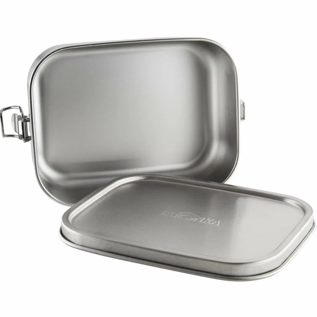 Die Bügelverschlüsse halten den Deckel sicher in Position und verhindern ein unbeabsichtigtes Öffnen im Rucksack. Der Deckel ist mit einer Silikondichtung versehen (nicht vollständig flüssigkeitsdicht!) und kann, wie der Rest der Dose, in der Spülmaschine gereinigt werden.