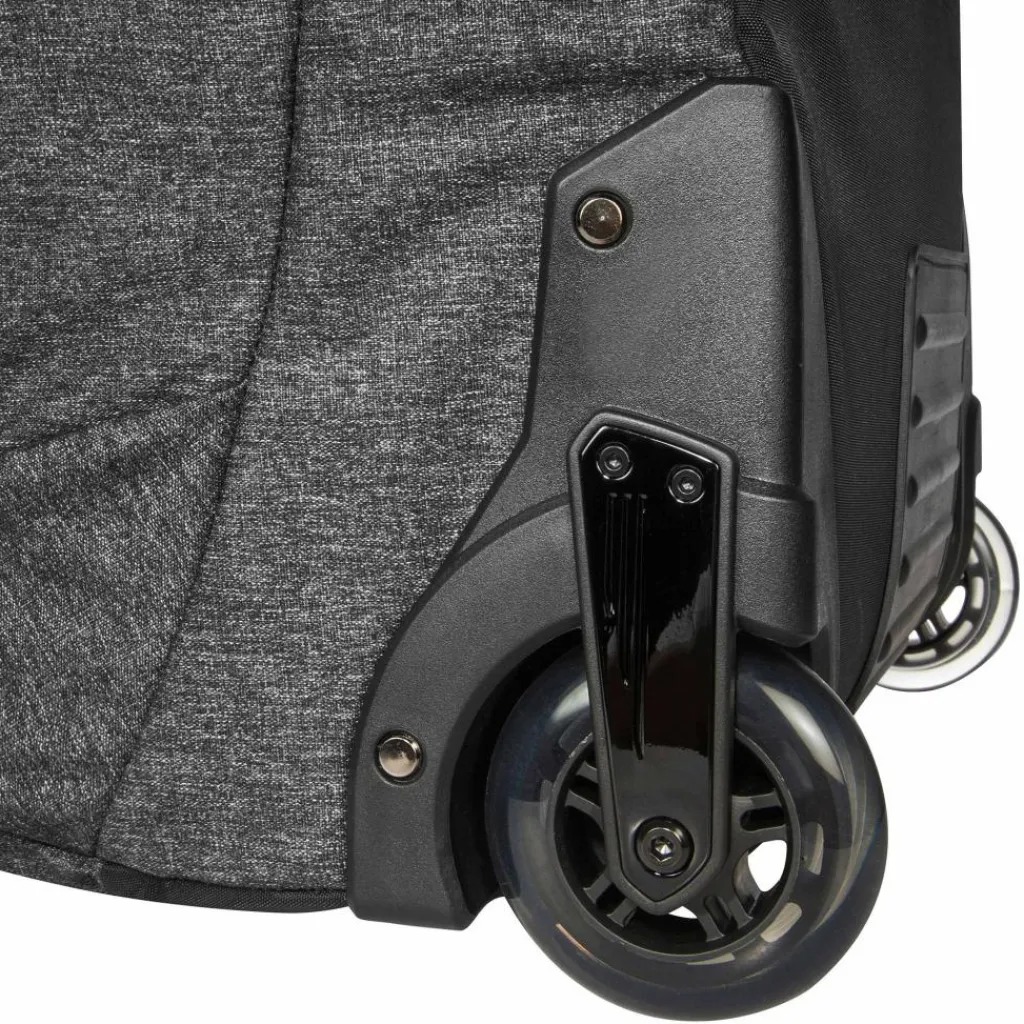 Bei 140 Litern Fassungsvermögen kann der Duffle Roller schnell mal schwer bepackt werden. Aber keine Sorge, du musst das Gewicht nicht schultern, sondern kannst die Reisetasche einfach hinter dir herziehen. Die geländegängigen Rollen gleiten leise und der Griff zum Ziehen ist großzügig geschnitten.