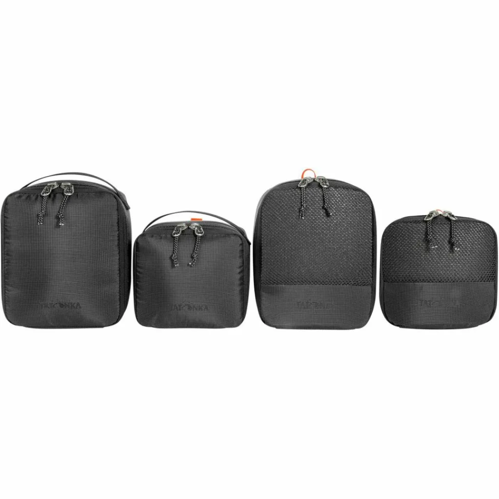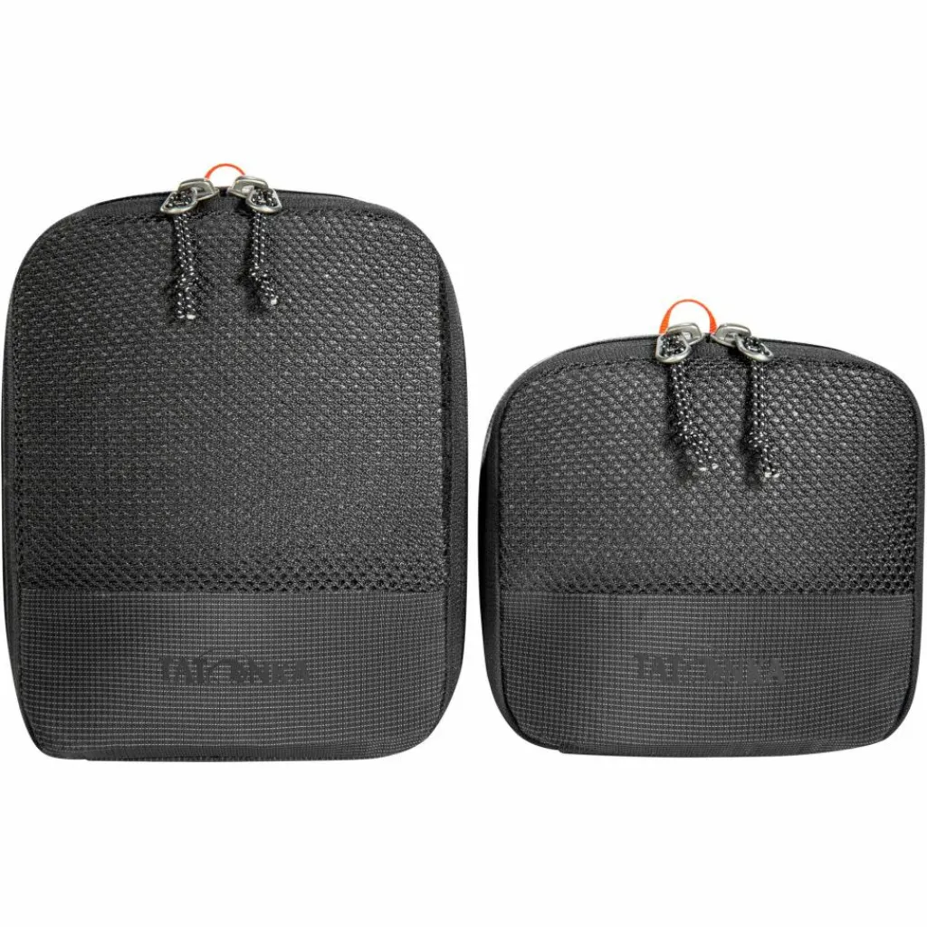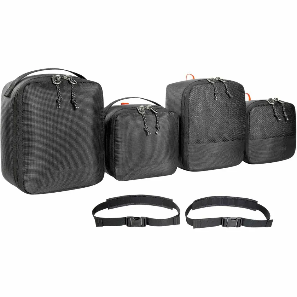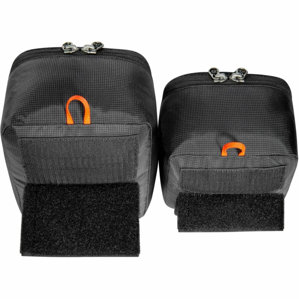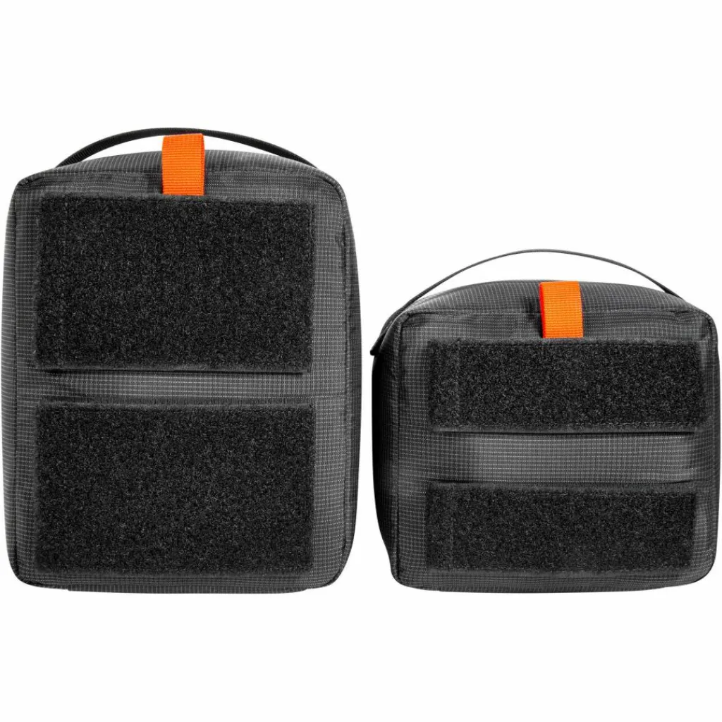 Das EDC Organisation Set von Tatonka besteht aus zwei gepolsterten Aufbewahrungstaschen, zwei Netztaschen mit Reißverschluss und zwei Kompressionsriemen. Alle Teile können in Rucksäcken angeklettet werden, die mit Klettflächen ausgestattet sind.