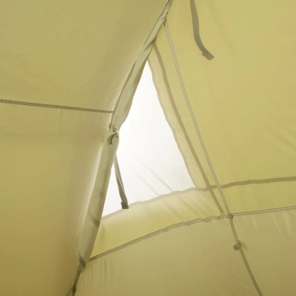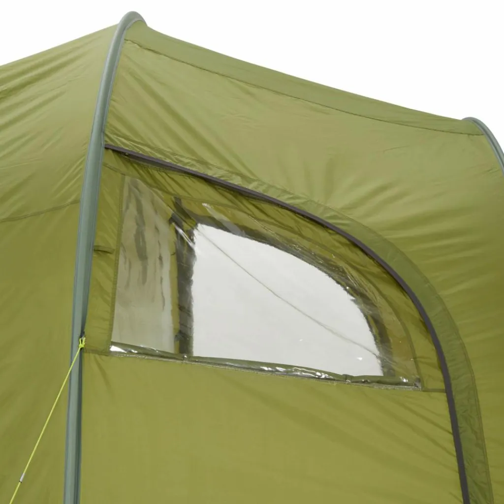 Die großzügig geschnitten Apsis hat viel Platz und vor allem Stehhöhe (205 cm) – dadurch lässt sie sich vielfältig nutzen: Als Abstellmöglichkeit für Gepäck, Tisch und Stühle, bei einem Fahrradurlaub können die Räder mit ins Zelt genommen werden, bei schlechtem Wetter dient sie als Aufenthaltsraum und erweitert so den Bewegungsradius im Zelt. In das Innenzelt gelangst du auf unterschiedlichen Wegen: durch einen der beiden seitlichen Eingänge über die Apsis oder über den rückseitigen Eingang direkt ins Innenzelt. Die Fenster in der Apsis sorgen zudem für Lichteinfall und Ausblick, können bei Bedarf aber auch abgedeckt werden.