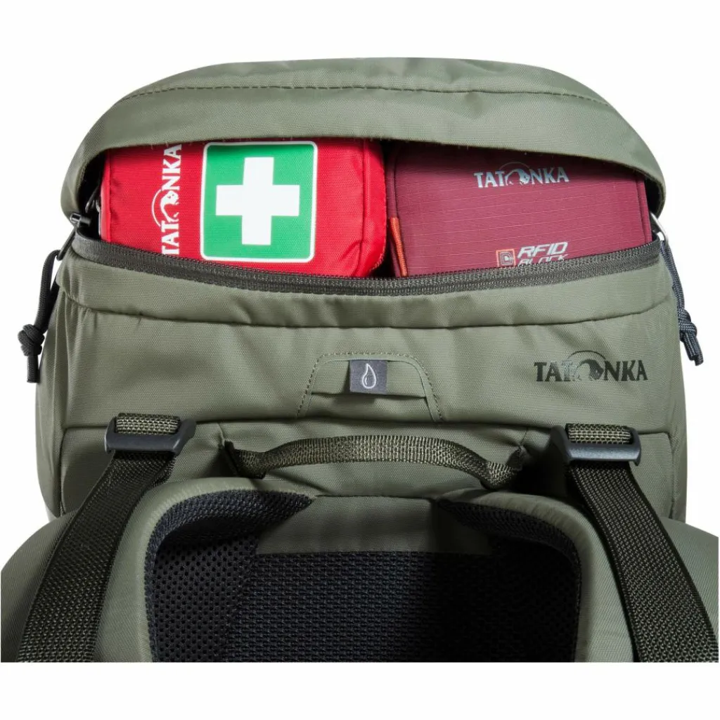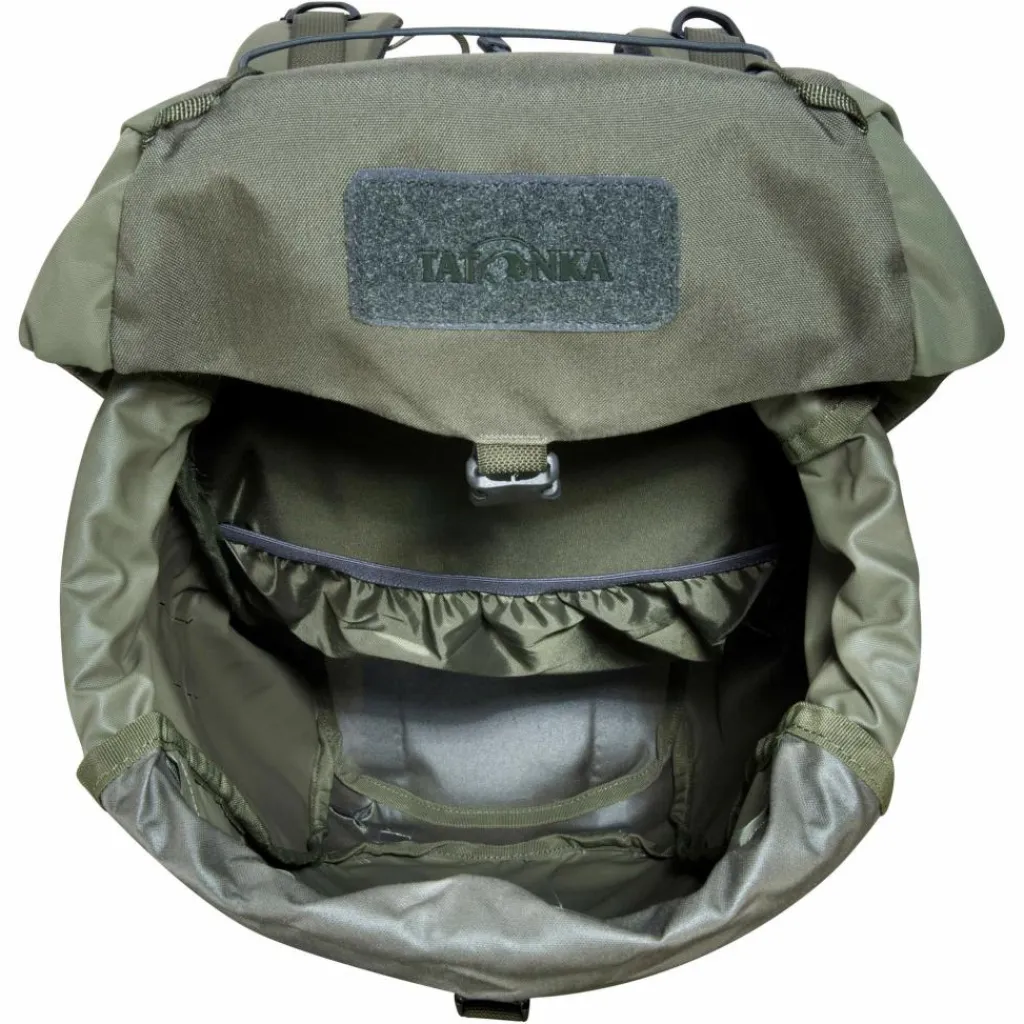 Die klassischen Rucksackfächer bringt der Tagesrucksack natürlich ebenfalls mit: Zwei RV-Fächer im Deckel, zwei Steckfächer an den Seiten, ein großes Steckfach auf der Front und ein RV-Fach auf dem Hüftgurt – mehr als genug Platz um Wasserflasche, Poncho und Co. übersichtlich unterzubringen. Für deine Wanderstöcke gibt es eine seitlich platzierte Schlaufe und die Isomatte ist dank zweier Riemen am Boden ebenfalls sicher verstaut. So lässt der Bushcraft-Spezialist sich auch wunderbar für herkömmliche Wandertouren nutzen.