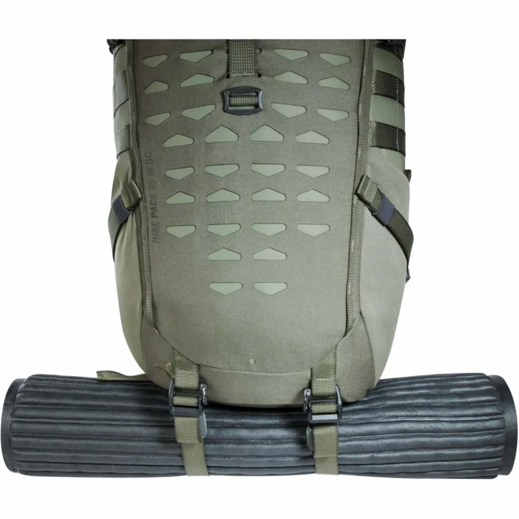 Axt, Messer, Tarp, Paracord, Hobokocher… alles kein Problem für den Hike Pack 25 W BC. Dank großflächig verteilter MOLLE-Schhlaufen an den Seiten und am Hüftgurt, mehrerer Daisychains sowie Lasercut-MOLLE auf der Front kannst du deine Ausrüstung mithilfe von Spanngurten und Materialkarabinern (optional erhältlich, siehe Zubehör) flexibel und griffbereit am Rucksack befestigen. Der Hike Pack 25 W BC lässt sich dadurch auch mit MOLLE-kompatiblen Taschen erweitern und perfekt auf dein individuelles Abenteuer anpassen.