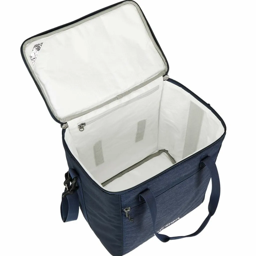 Kühltasche mit 25 l Volumen und herausnehmbarer, gepolsterter Unterteilung, um bis zu sechs Flaschen sicher transportieren zu können. Zwei Tragegriffe und ein Schultergurt erleichtern den Transport.