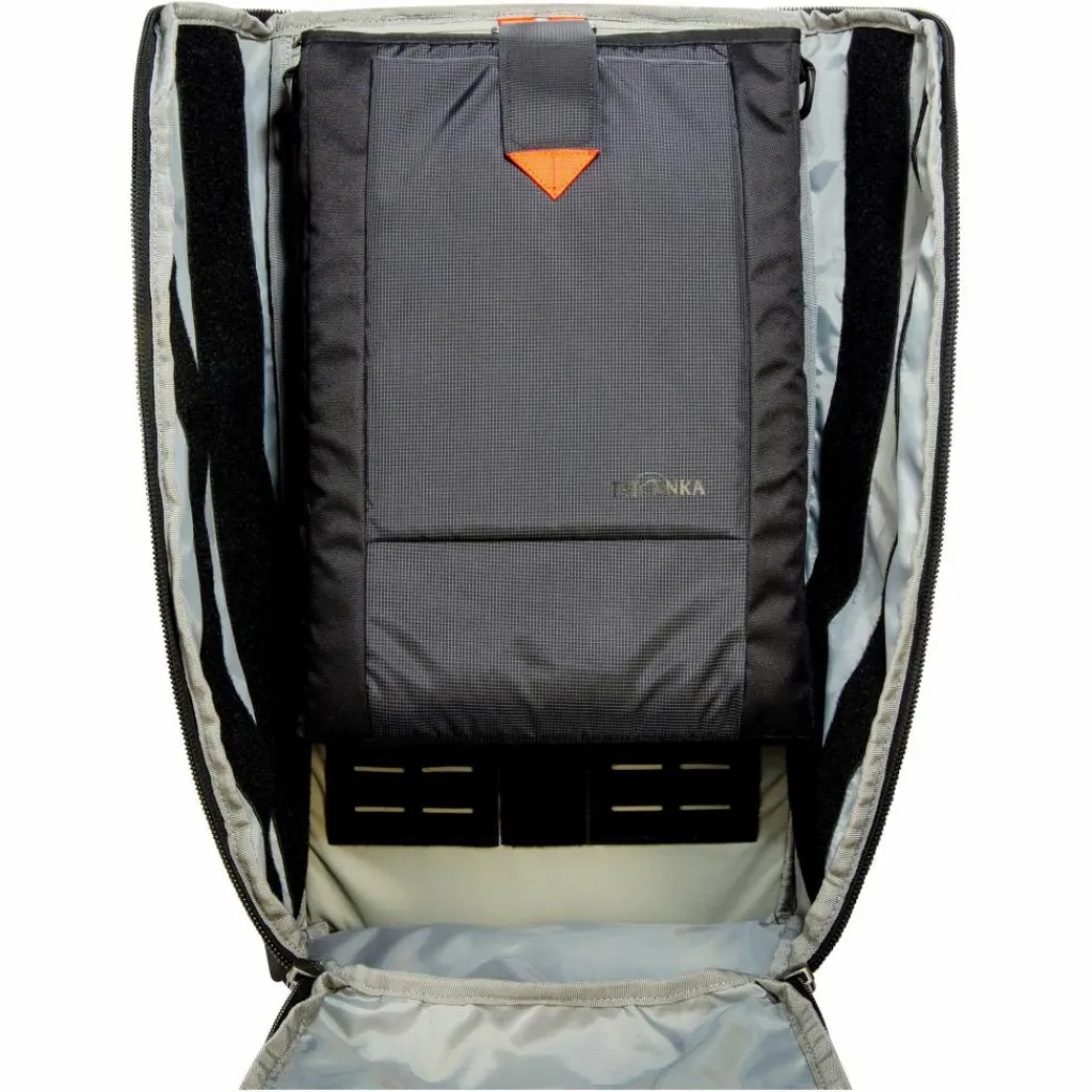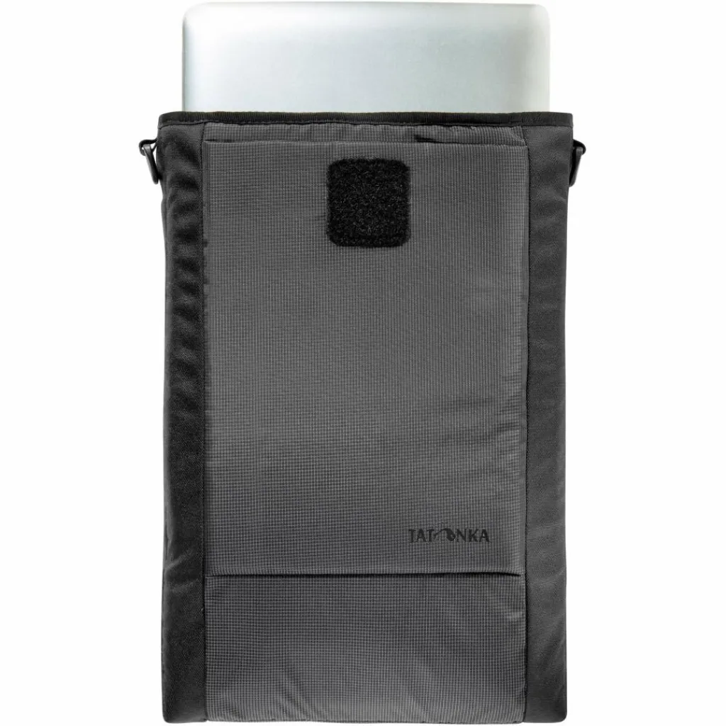 Diese gepolsterte Laptophülle eignet sich für 15-Zoll-Laptops. Auf der Front befindet sich außerdem ein Einschubfach für ein kleines Tablet. Die Hülle kann in jedem Rucksack passender Größe verwendet werden. Im Tatonka-Rucksack EDC Pack 30 BC kann sie auch eingeklettet werden, da sie eine abgedeckte Klettfläche auf der Rückseite besitzt.