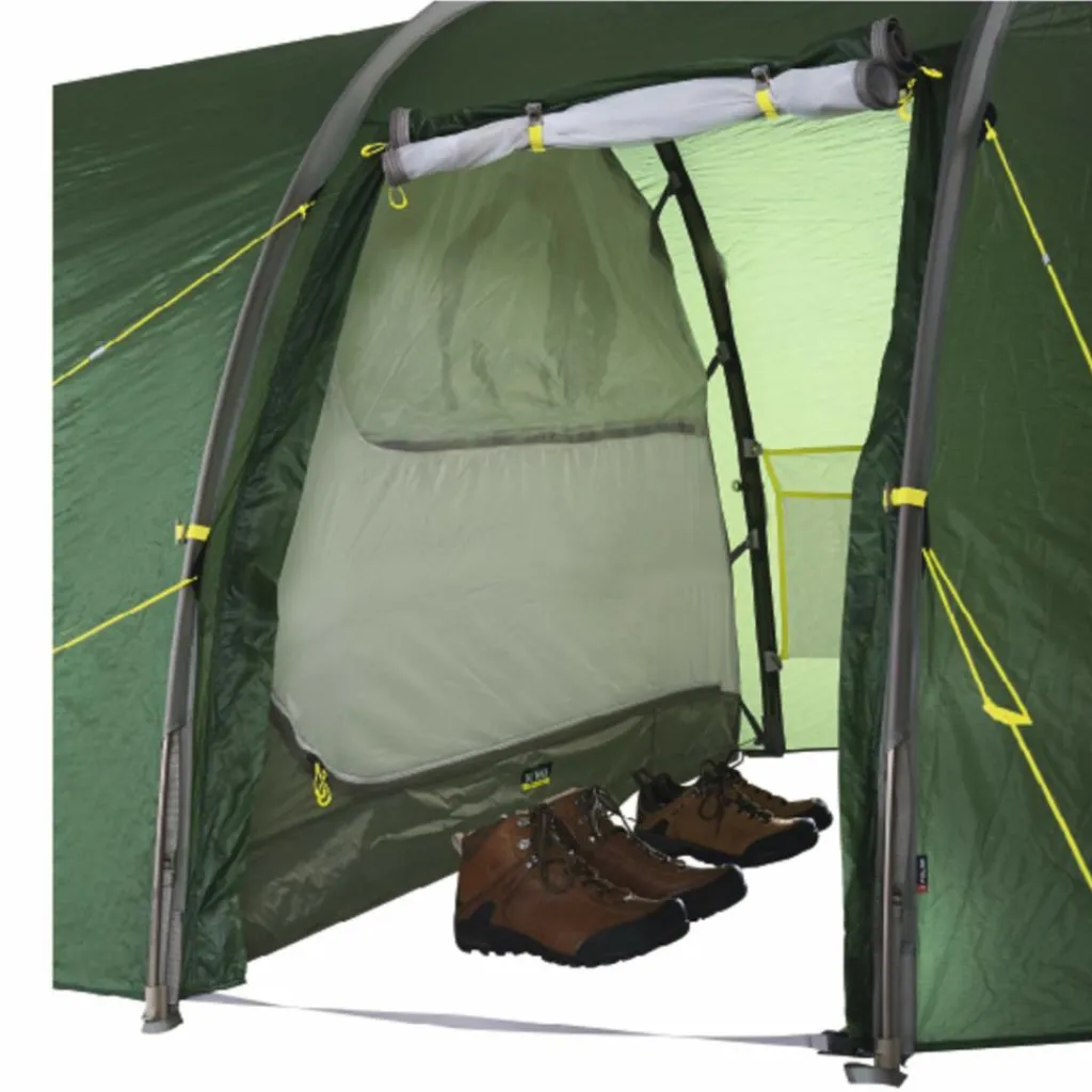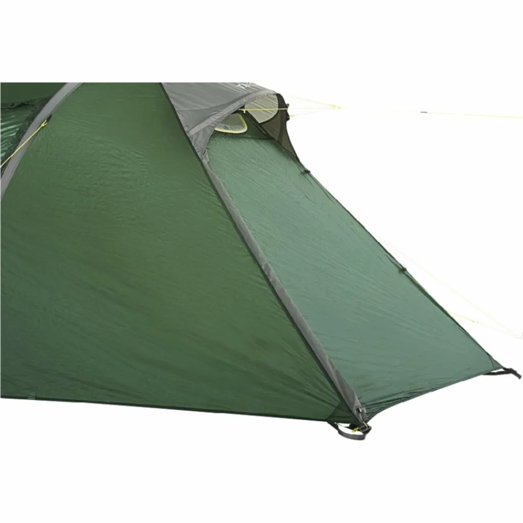 Das 3-Personen-Zelt Polar 3 ist aus sehr leichten und extrem haltbaren Materialien gefertigt. Das Tunnelzelt besteht aus drei Gestängebögen und besitzt eine große Apsis mit einem Seiteneingang. In diesem Vorraum kann sowohl die Outdoor-Ausrüstung für drei Personen gelagert als auch bei schlechtem Wetter gekocht werden. Dank der Tunnelkonstruktion mit den steilen Wänden bietet das Zelt eine hervorragende Raumausnutzung.
