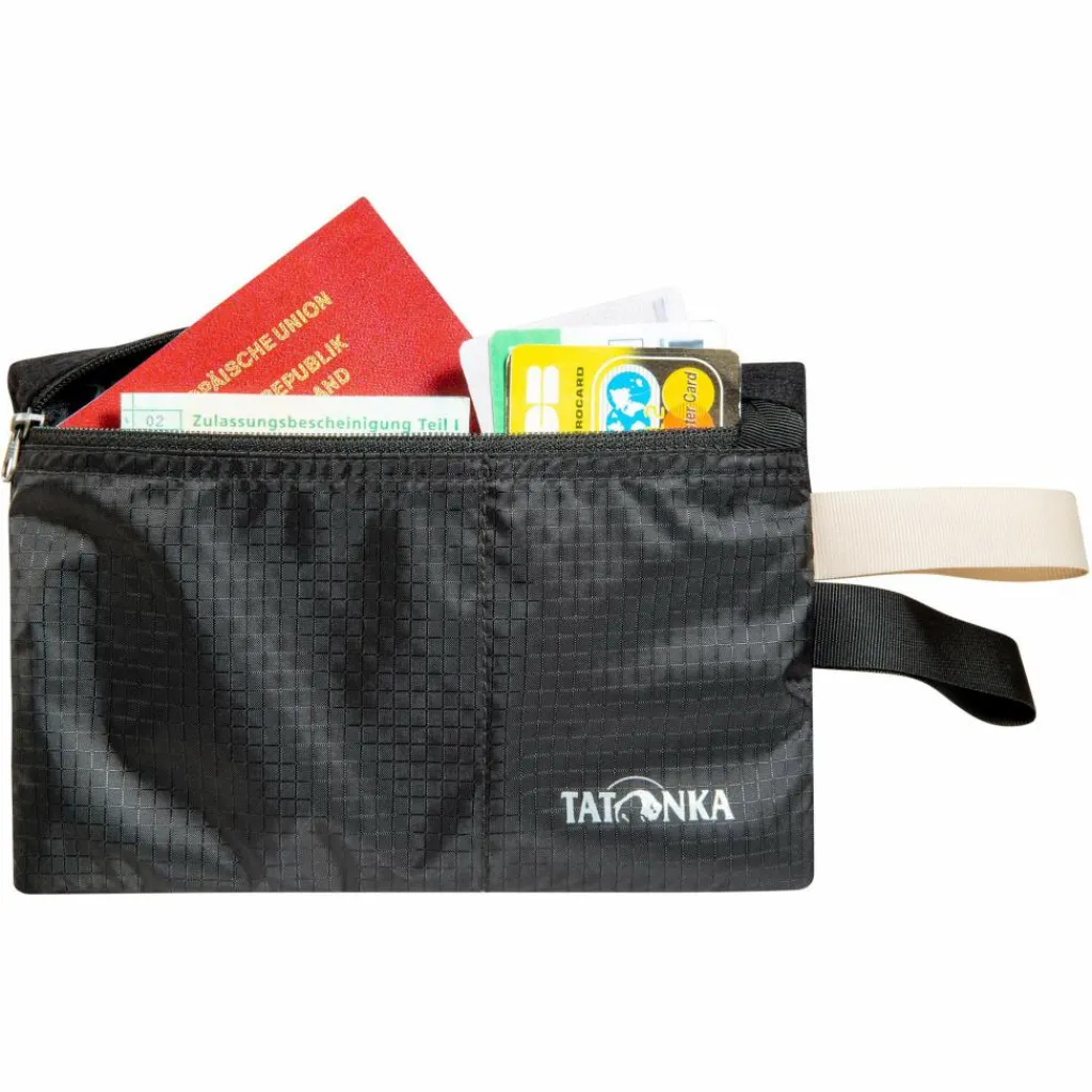 Die Flip In Pocket wird am Gürtel befestigt und nach innen getragen, so bringt sie Geld, Ausweis und Kreditkarten vor Blicken geschützt unter. Das Hauptfach wird per RV geöffnet und ist groß genug für einen EU-Reisepass. Im Innern befinden sich zwei weitere Netzfächer.