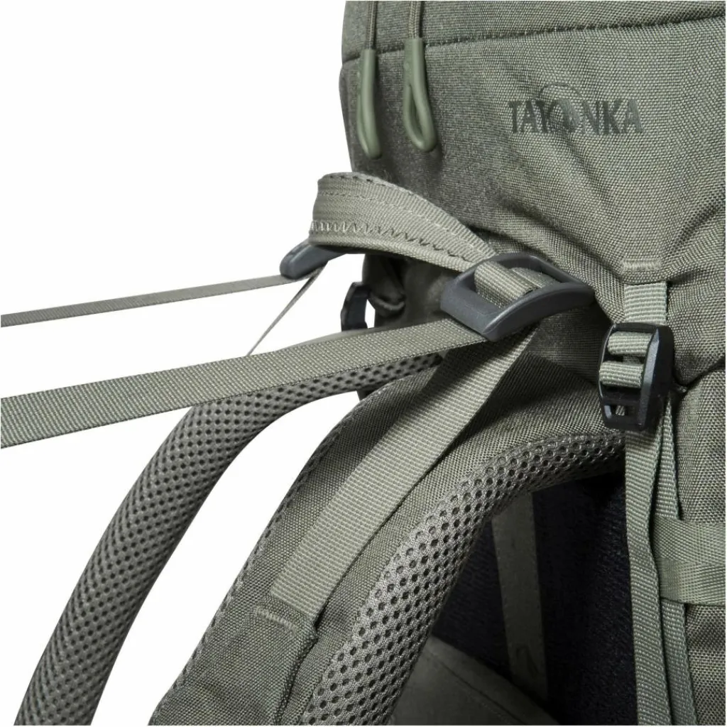 Dass Tatonka bei der Entwicklung des Pyrox 45+10 BC die Bedürfnisse von Bushcrafter:innen im Blick hatte, wird nicht nur an der unauffälligen Naturfarbe deutlich. Der Trekkingrucksack ist aus robustem Cordura gefertigt, sodass du ihn beim Abladen im Gelände nicht mit Samthandschuhen anzupacken brauchst. Dazu kommen vielfältige Möglichkeiten zusätzliche Taschen oder Ausrüstung mithilfe des MOLLE-Systems zu befestigen – perfekt um Werkzeug und Co. griffbereit anzubringen. Dank zweier Tragegriffe lässt der Pyrox 45+10 BC sich auch bei schwerer Beladung sehr gut handhaben.