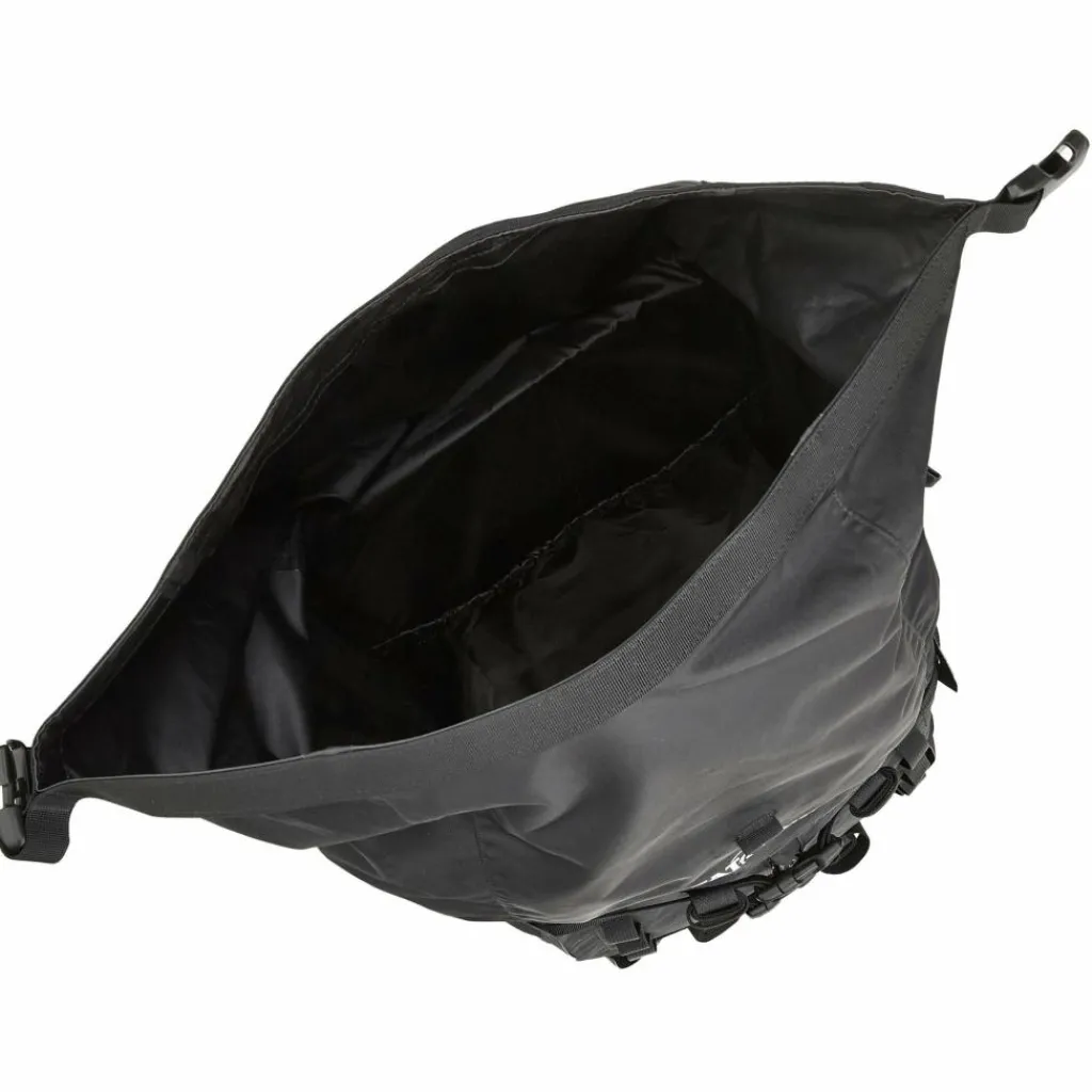 Neben dem wasserdichten Hauptfach bietet der Kurierrucksack dir mehrere praktische Möglichkeiten, kleinere Gegenstände außen zu befestigen. Die seitlichen Steckfächer eignen sich perfekt für kleine Wasserflaschen oder Thermobecher. Mithilfe des Klemmgurtes auf der Kopfseite kannst du nicht nur den Rolltop-Verschluss zusätzlich fixieren, sondern auch eine Regenjacke oder ein Sitzkissen verstauen. Die umlaufenden Kompressionsriemen ermöglichen es dir auch größere Gegenstände, zum Beispiel eine Faltmatte, außen zu fixieren. Und Kleinigkeiten, die schnell griffbereit sein sollen, lassen sich flexibel an den Daisychains auf der Front anbringen. Dazu braucht es nur einen Materialkarabiner (optional erhältlich).