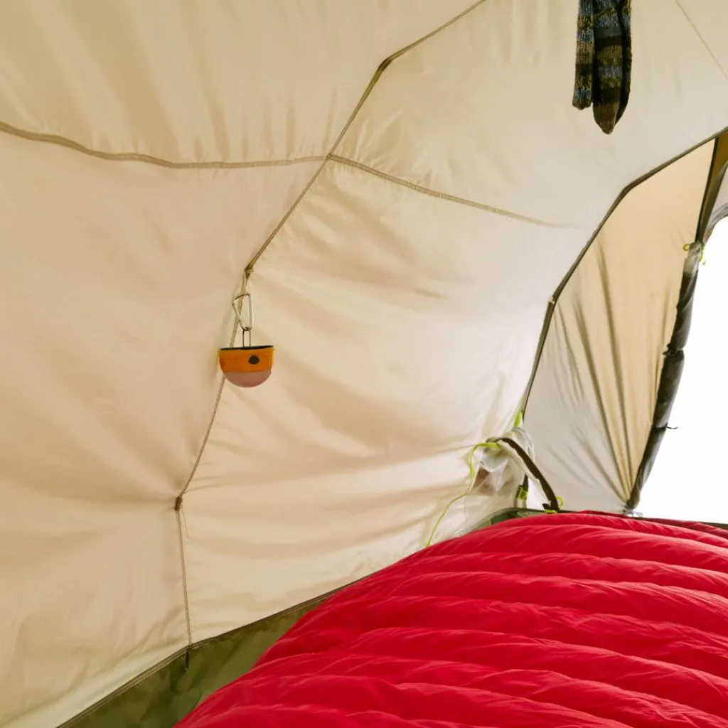 Durch das weit heruntergezogene Außenzelt sind selbst Touren bei gemäßigtem Winterwetter möglich. Große Lüfter sorgen bei sommerlichen Temperaturen hingegen für ausreichende Belüftung im Innenzelt. Sie sind mit einem Moskitonetz verschlossen, damit keine Insekten in die Apsis gelangen können. Muss aber für maximale Belüftung gesorgt werden, kannst du das Moskitonetz auch öffnen.