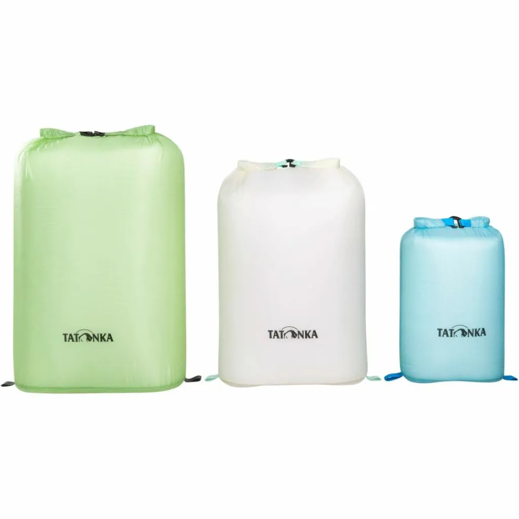 Dank Rollverschluss lässt sich der Beutelinhalt komprimieren. Durch den rechteckigen Boden kannst du die Beutel außerdem sehr gut packen. Das Set besteht aus drei Beuteln unterschiedlicher Farbe mit 5 Liter, 15 Liter und 20 Liter Volumen.