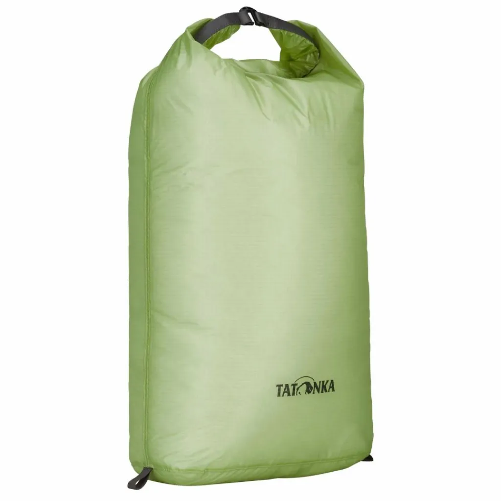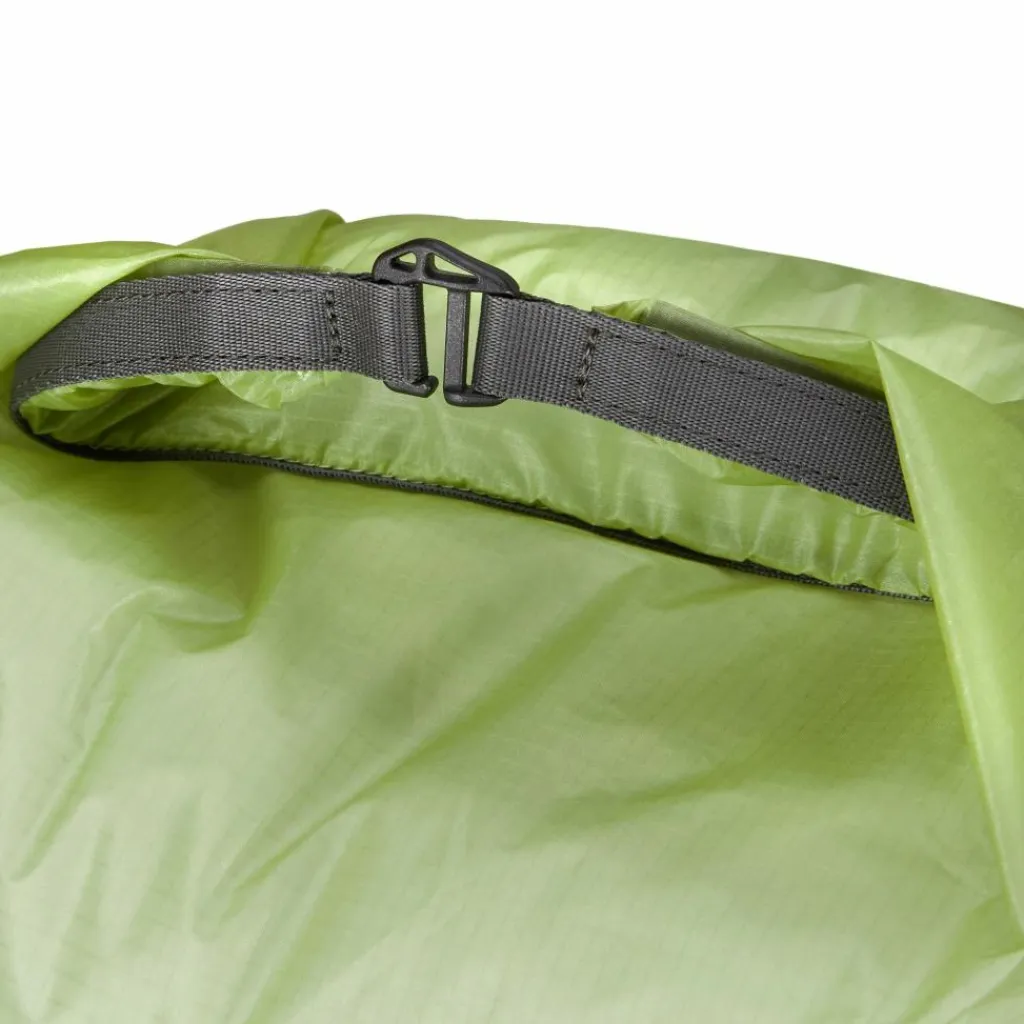 Der leichtgewichtige Sqzy Dry Bag besteht aus silikonisiertem 30D Nylon mit vertapten Nähte. Das macht ihn wasserdicht. Der Rollverschluss ist mit Gurtband verstärkt und wird mit einem praktischen Haken verschlossen. Denk dran, den Rollverschluss mindestens dreimal zu rollen, damit keine Feuchtigkeit von oben eindringen kann.