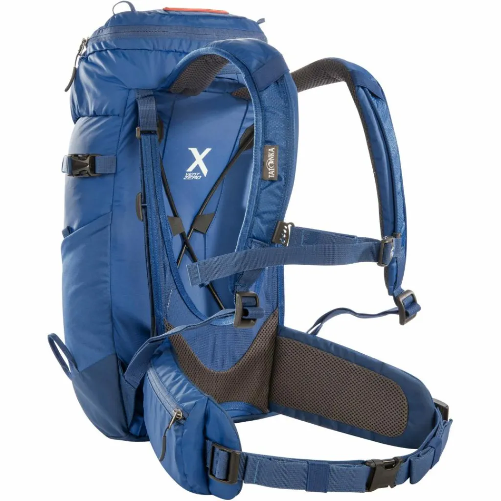 Der Wanderrucksack ist mit einem Deckelfach, seitlichen Einstecktaschen und Materialschlaufen versehen. Im Hauptfach befindet sich ein separates Einsteckfach für eine Trinkblase, der Trinkschlauch wird über eine Öffnung am Rucksackrücken nach außen geführt. Eine Wanderstockhalterung und eine Regenhülle vervollständigen die Ausstattung.
