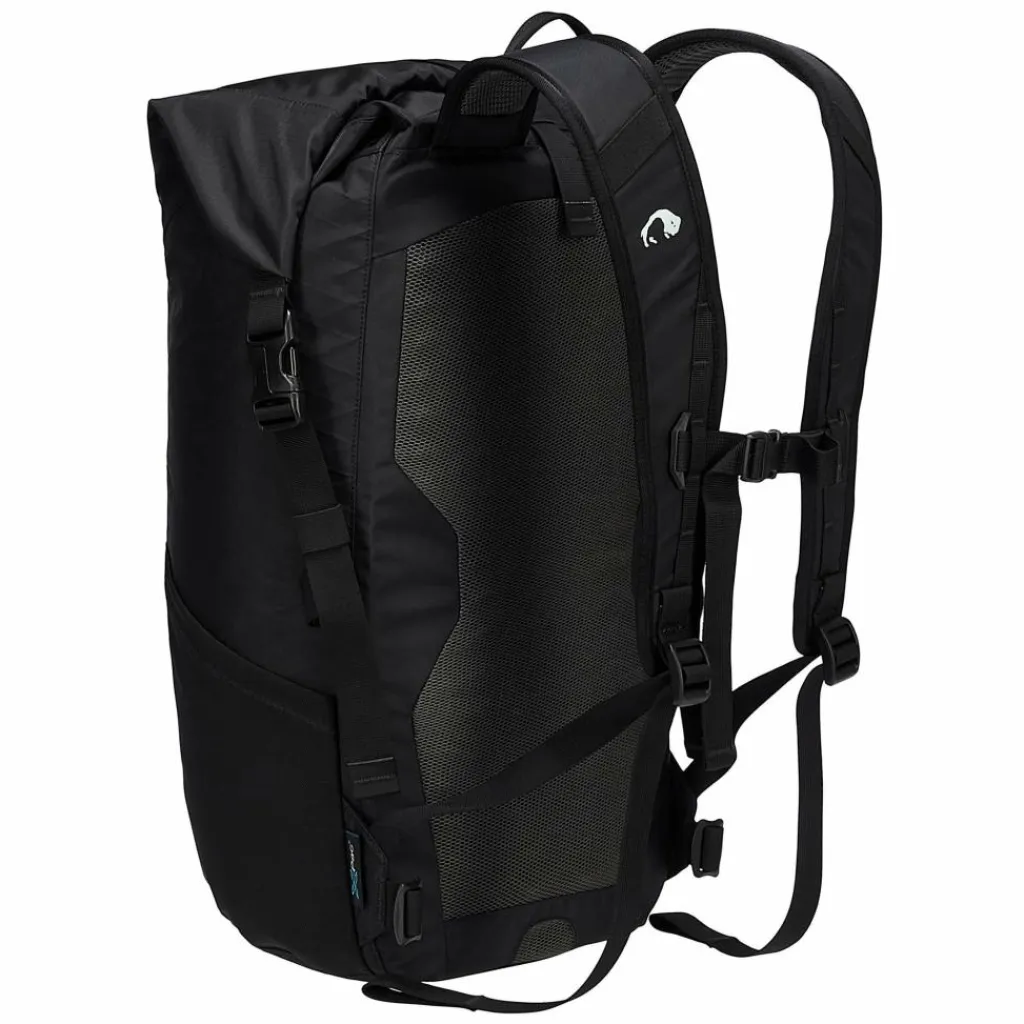 Das Hauptmaterial des Tagesrucksacks ist wasserdicht beschichtet und die Nähte sind getapt. So musst du dir beim Fahrradfahren, Pendeln oder im Alltag keine Sorgen um plötzliche Wetterumbrüche machen. Beachte bitte, dass der Rolltop-Verschluss mindestens drei Mal gerollt und mithilfe der Blitzschnallen festgezogen werden muss, um wirklich wasserdicht abzuschließen.