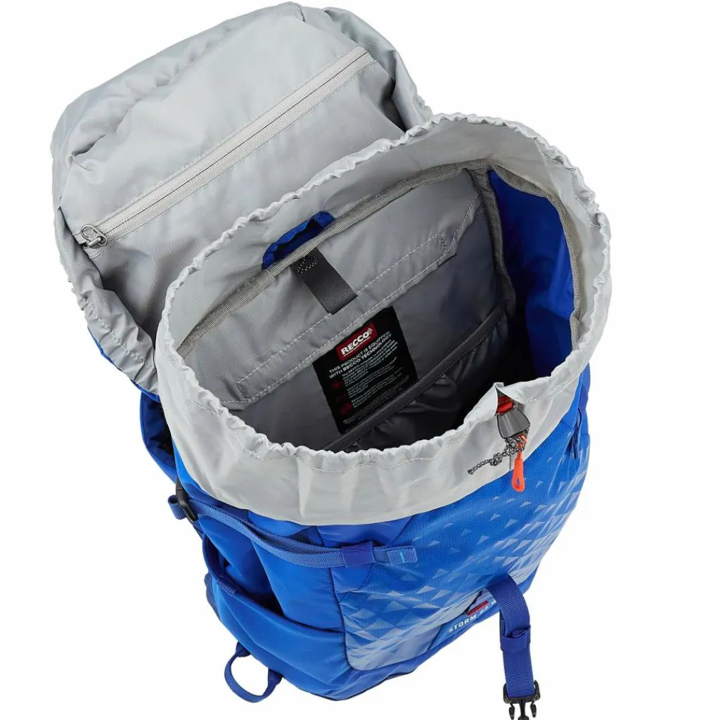 Neben den klassischen Features eines Wanderrucksacks wie Regenhülle und Trekkingstockhalterung, ist der Rucksack mit einem RECCO-Reflektor auf dem Rucksackdeckel ausgestattet. Mit seiner Hilfe kannst du im Notfall schnell geortet werden.