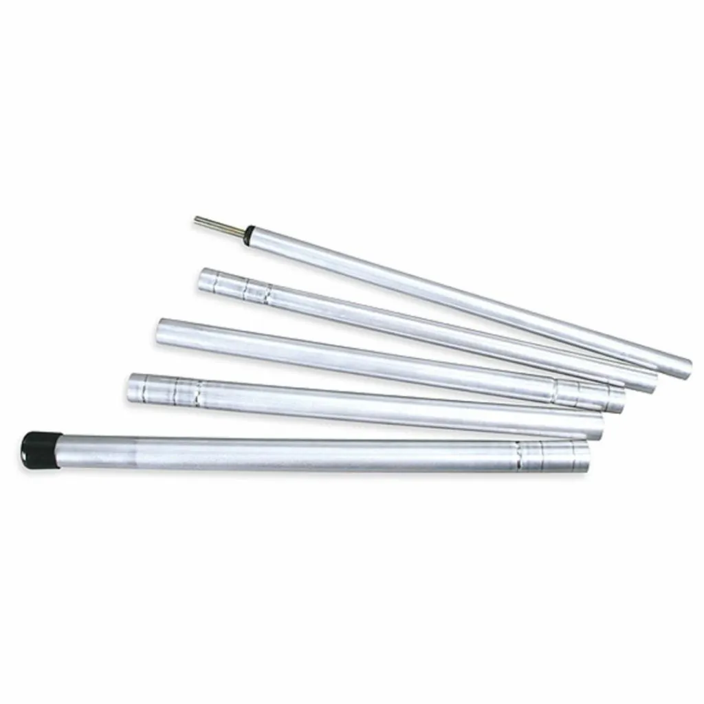 Die Aluminium-Stangen werden aus unterschiedlichen Rohrdurchmessern zusammengesetzt, dadurch lassen sie sich zum Transport exakt ineinanderschieben.