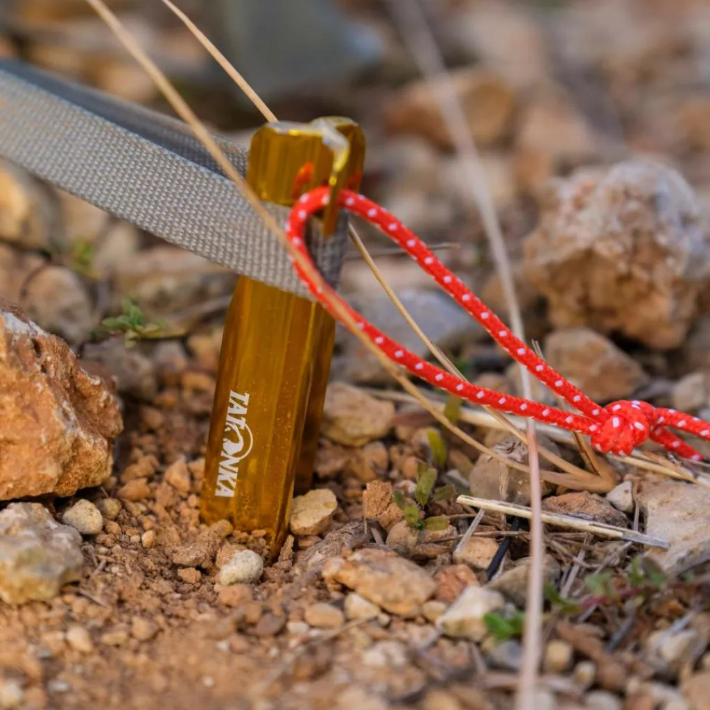 Der leichte Aluminium-Zelthering besitzt ein Y-Profil und ist 25 cm lang. Die spezielle Y-Form verhindert das Verbiegen des Zeltherings und erleichtert das Einschlagen in harte Böden. In gut sichtbarem Gold und mit Schlaufe zum Herausziehen.