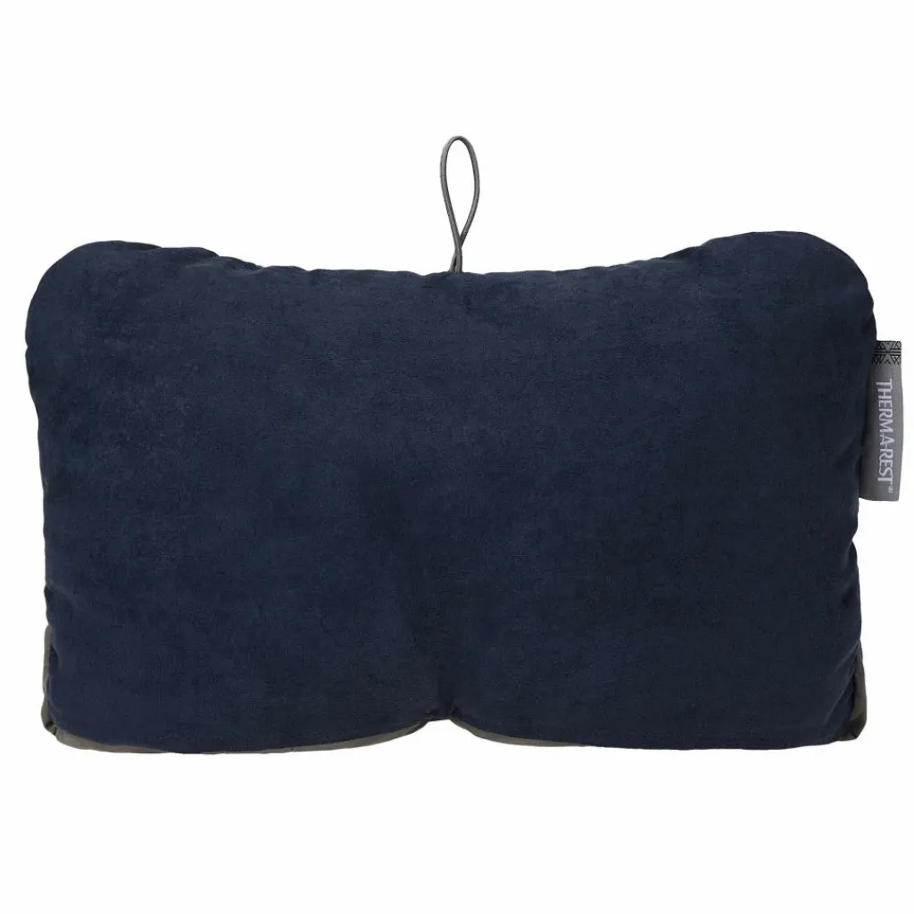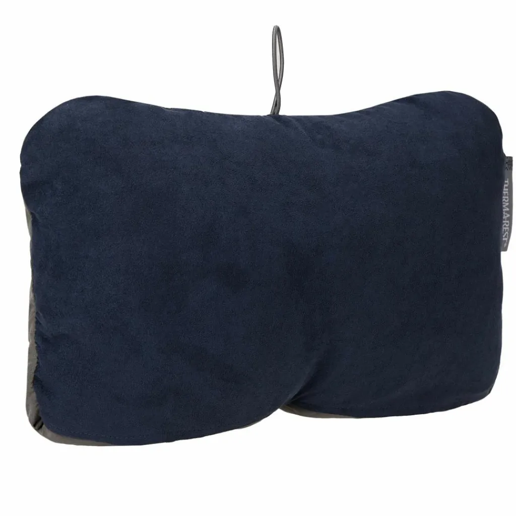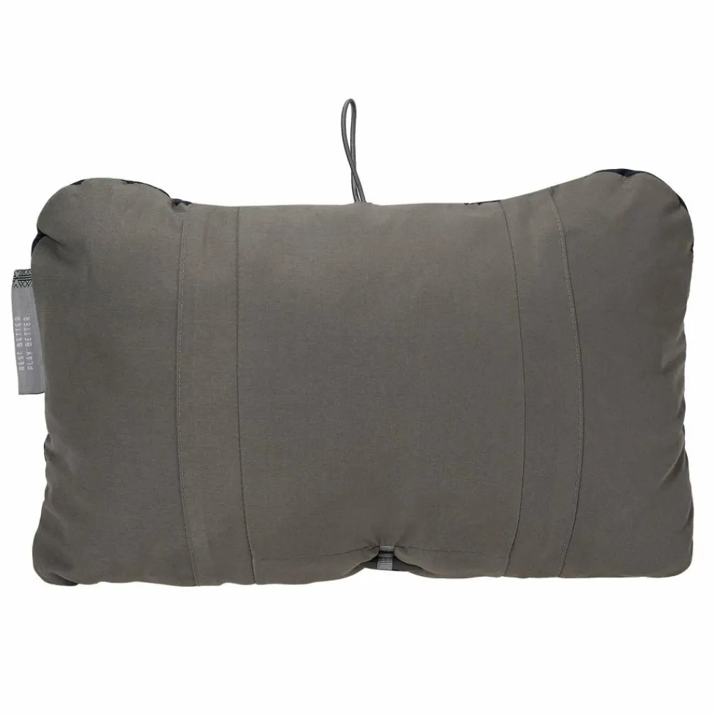 Vollwertiges Kopfkissen für unterwegs. Praktisch: Der Kordelzug auf der Rückseite komprimiert das Kissen so, dass du die Kissenhärte an deine Bedürfnisse anpassen kannst.