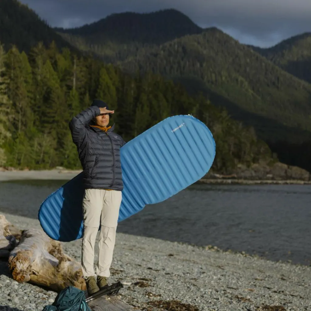 Viele Thermomatten sind dick und leicht, müssen aber mit einem Pumpsack aufgeblasen werden. Andere sind dick, schwer und selbstaufblasend und damit nichts für Touren, bei denen du aus eigener Muskelkraft unterwegs bist. Mit der Trail Pro hat Therm-a-Rest eine leichte, selbstaufblasende Thermomatte konstruiert, die 7,6 cm dick ist und einen R-Wert von 4,4 erreicht. Damit zählt sie zu den leichtesten Modellen ihrer Klasse.